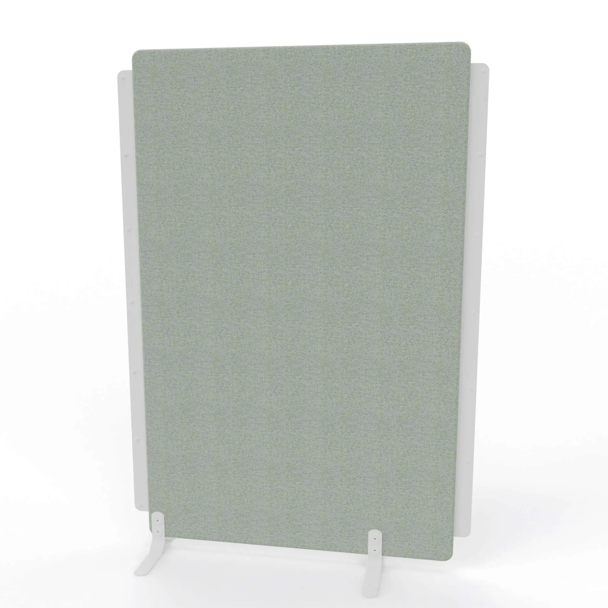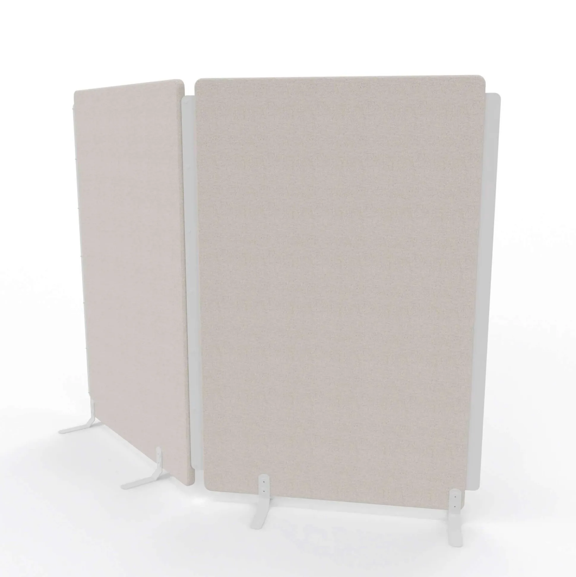 Skærmene er fremstillet af en træramme fyldt med en 30 mm lydabsorberende kerne overtrukket med beigefarvet vinyl. Skærmene sættes nemt sammen da de er udstyret med trykknapper.