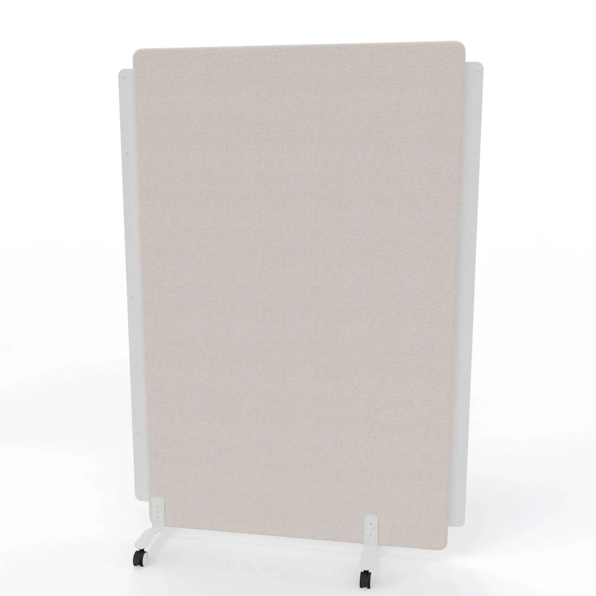 Skærmene er fremstillet af en træramme fyldt med en 30 mm lydabsorberende kerne overtrukket med beigefarvet vinyl. Skærmene sættes nemt sammen da de er udstyret med trykknapper.