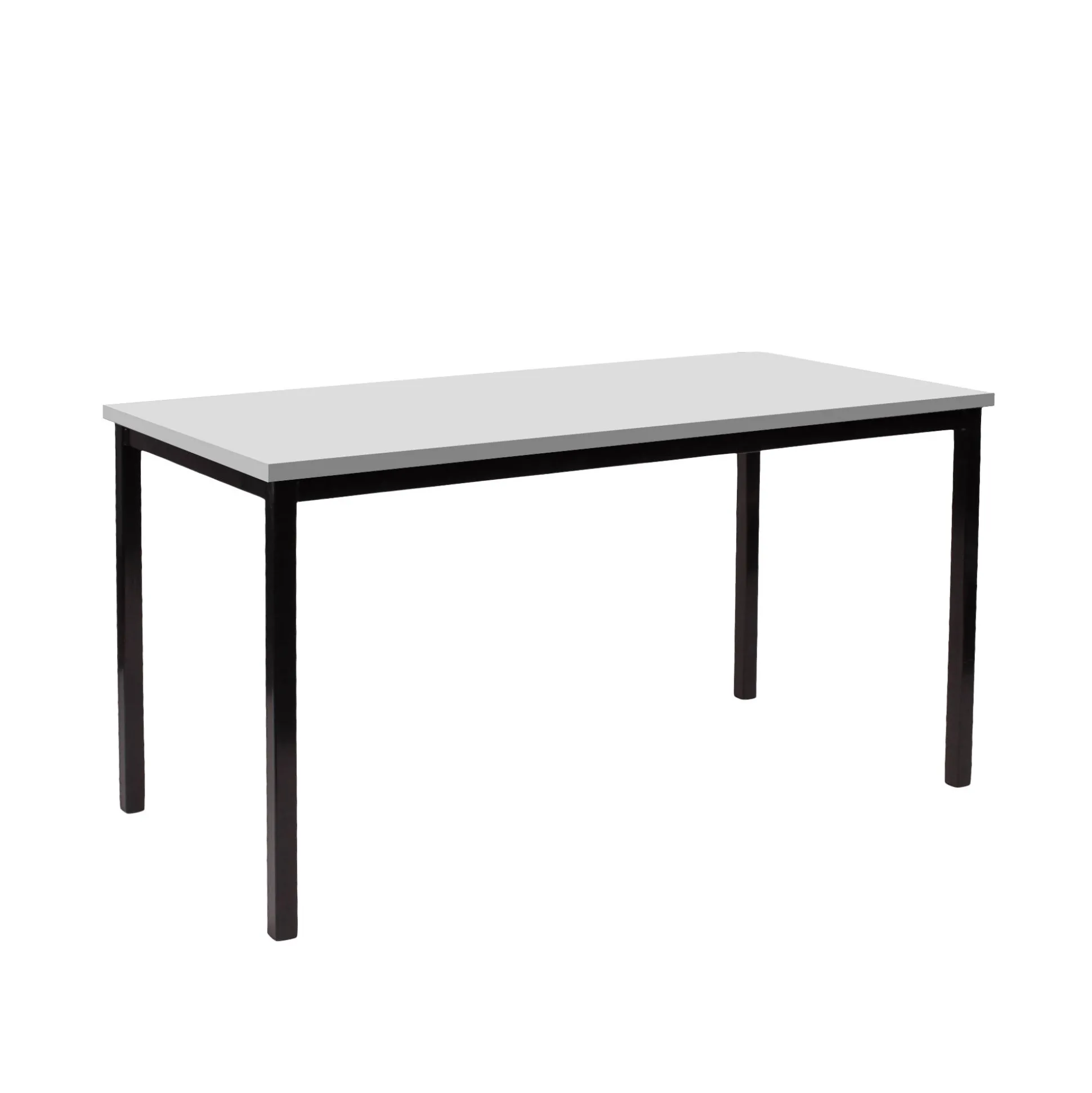 En stærk bordplade, 18 mm. og et kraftigt svejst stel i 35×35 mm. firkantrør sikrer lang levetid. Bordplade i ridsefast decorlaminat som er nemt at vedligeholde. Kanter i matchende ABS. Metalrammen, som er svejst, på alle fire sider, sikrer ekstra understøtning af bordpladen. ABS plastkanter, givende en ekstra solid kant.