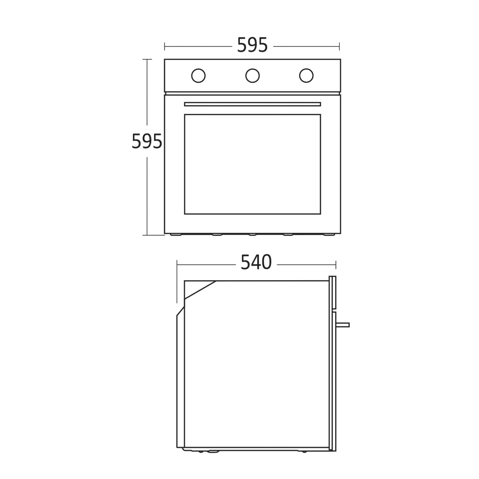 - Indbygningsmål, Højde x Bredde x Dybde: 590 x 560 x 560 mm