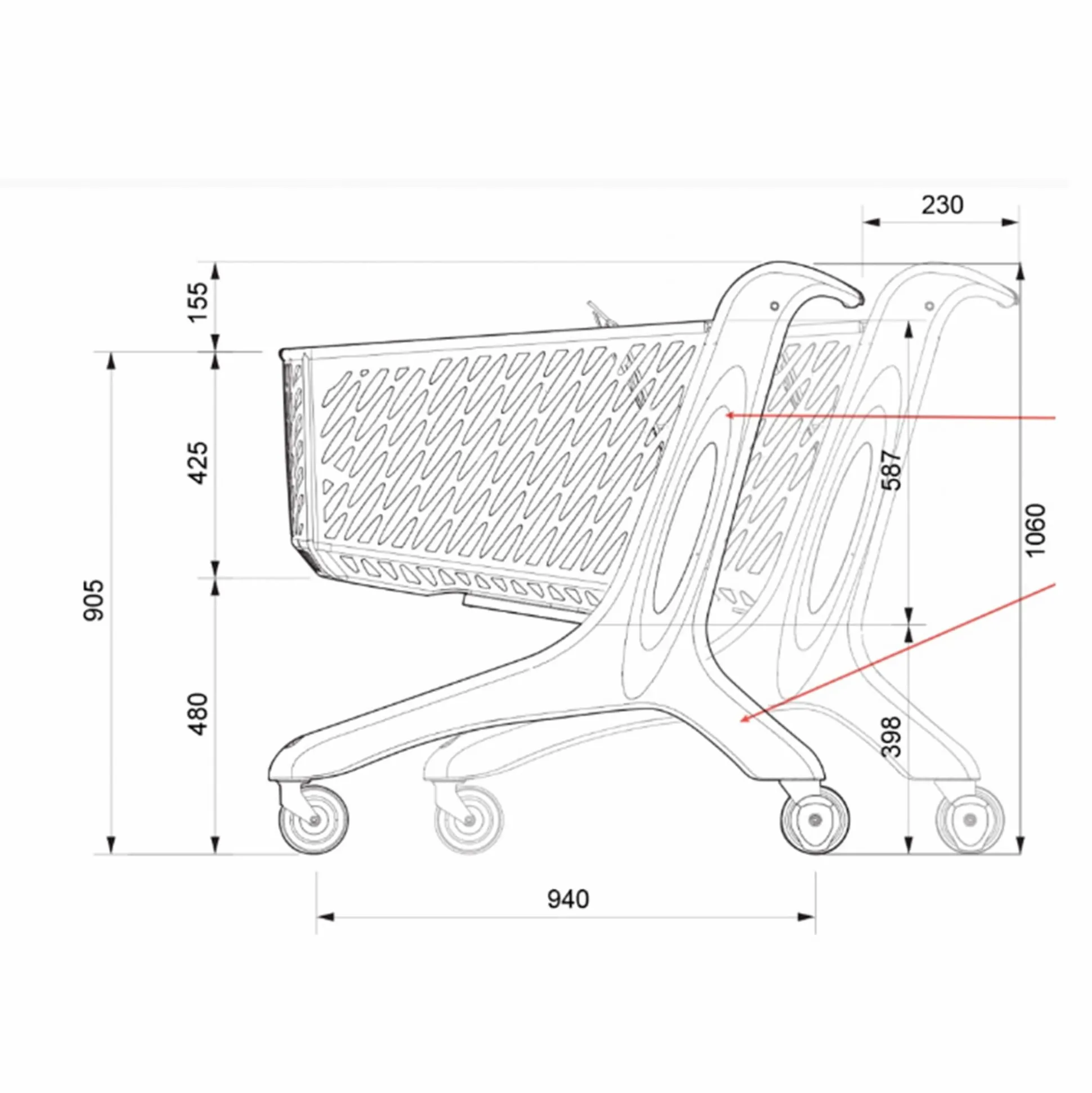 Indkøbsvogn City i plast og stor kapacitet på 160 liter, nem at manøvrer, selv når den er fuldt læsset.
