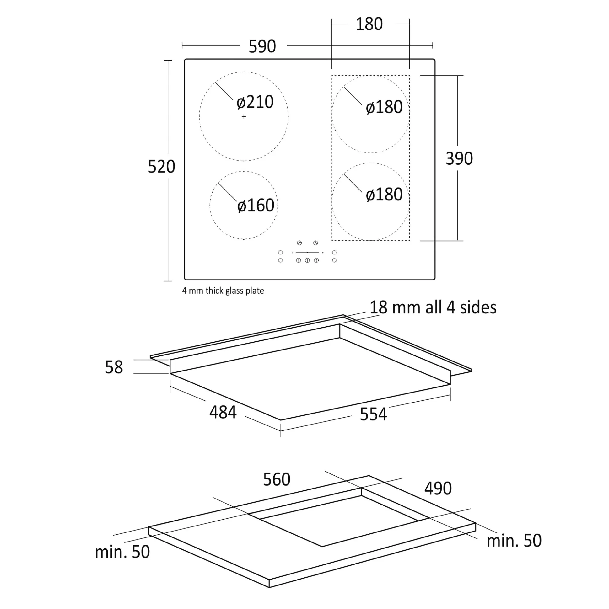 - Glasplade mål, Højde x Bredde x Dybde: 62 x 590 x 520 mm