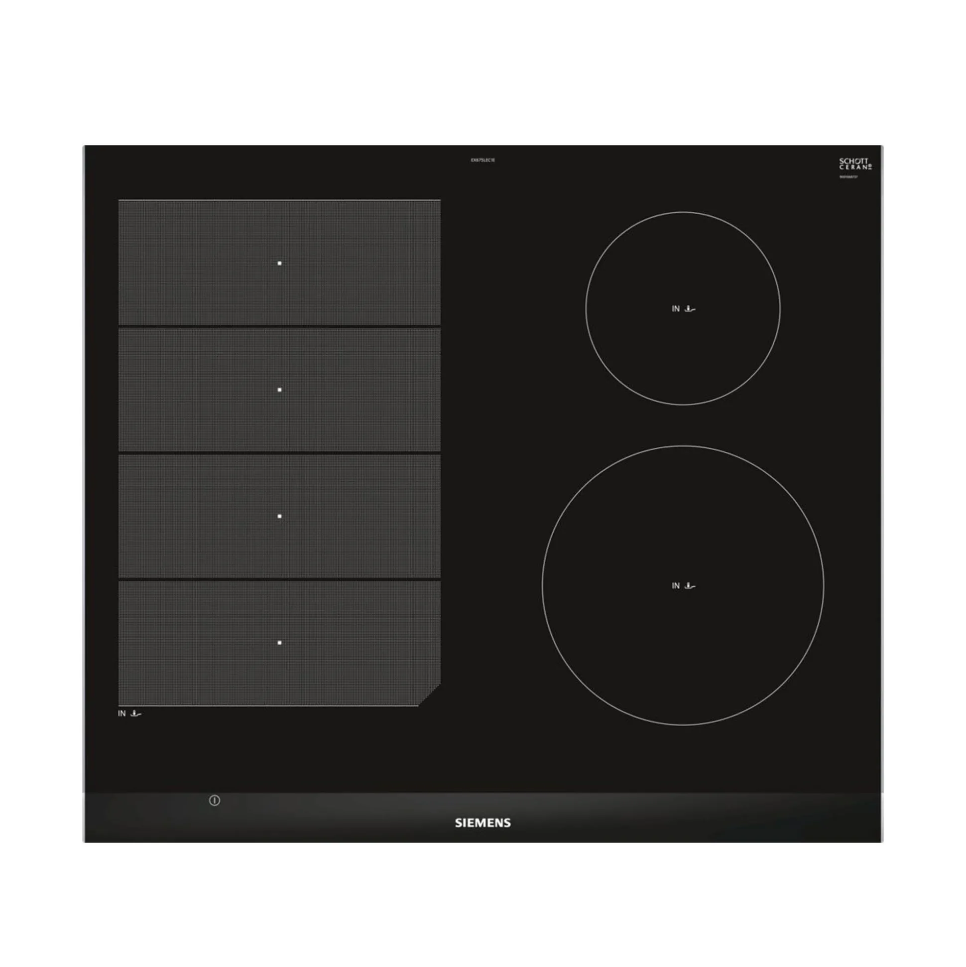 Siemens EX675LEC1E er en sort induktionskogeplade, der kombinerer stilfuldt design med avanceret teknologi. Den er udstyret med FlexInduction for fleksible madlavningszoner og en innovativ Dual lightSlider-betjening, som sikrer nem og præcis kontrol.