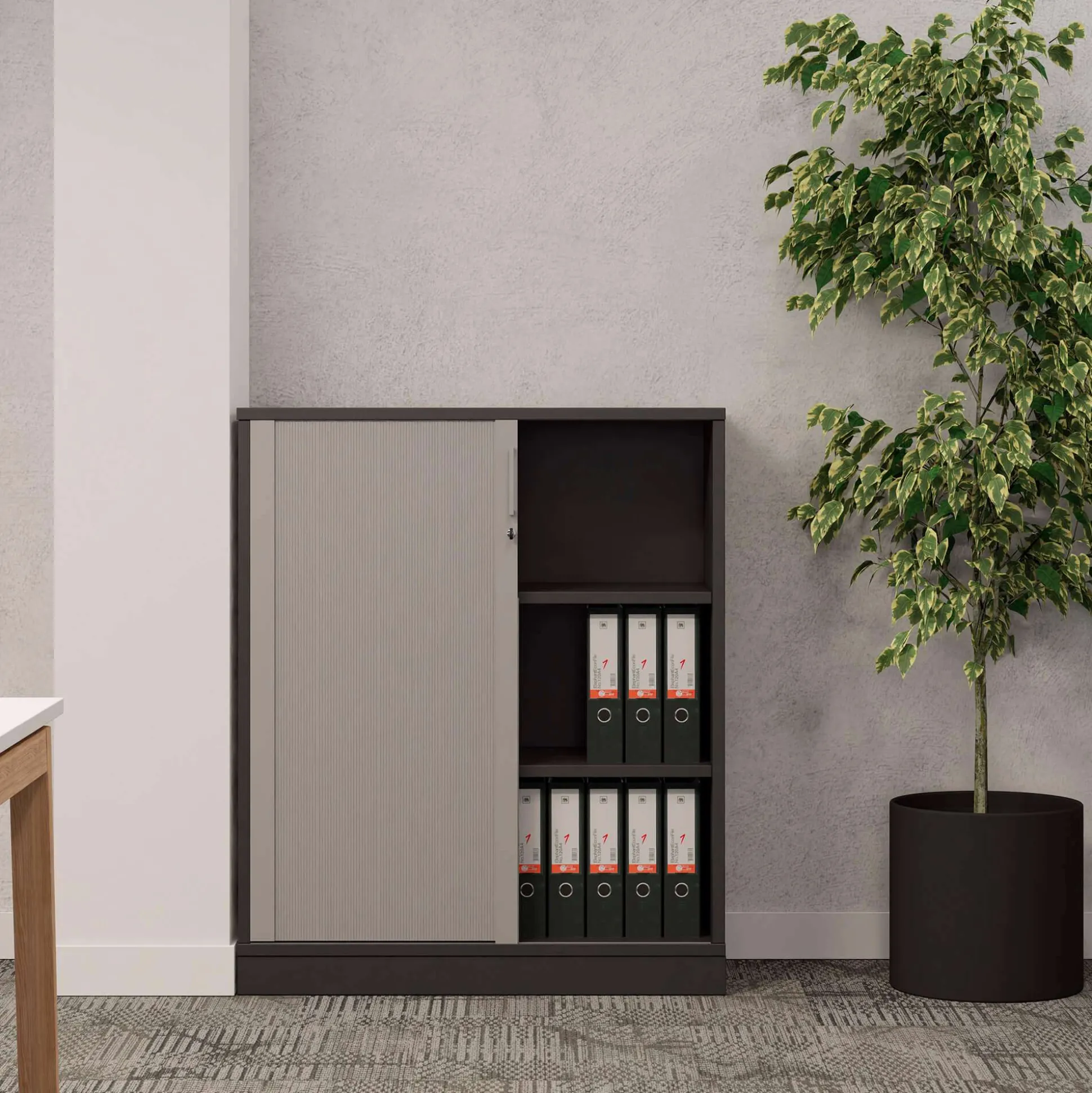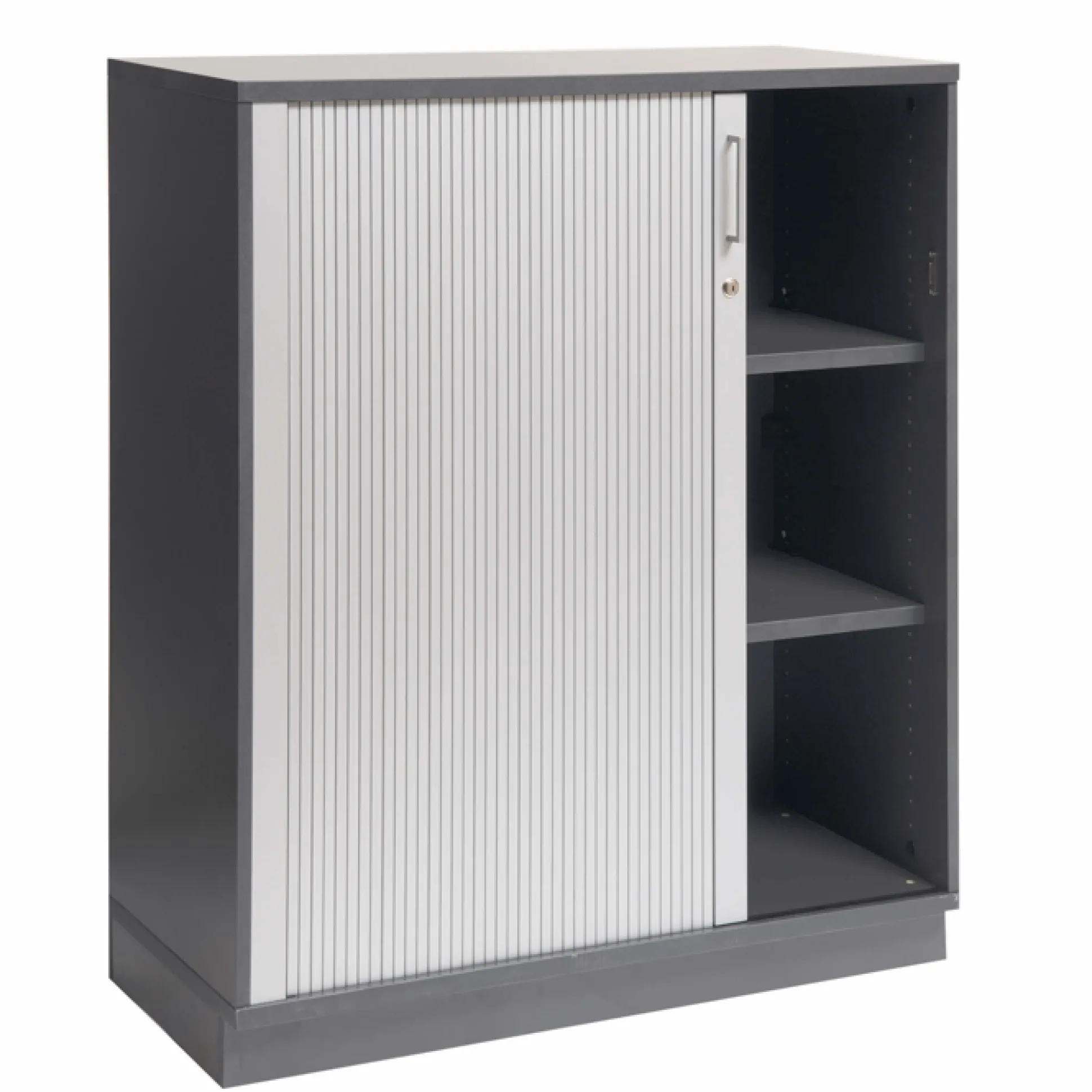 Vores EP Xtra-serie af kontorskabe er lavet i en professionel kvalitet, som er slidstærk og yderst holdbart. Kontorskabet er med jalousilåger i alu og er lavet i slidstærk decor laminat. Det er inkl. sokkel og lås, hvilket gør at det lever op til lovkravet om håndtering og opbevaring af persondata jf. persondataloven. Skydedørsskabet er grundet sin aflåsning også ideelt til opbevaring af personlige ejendele.