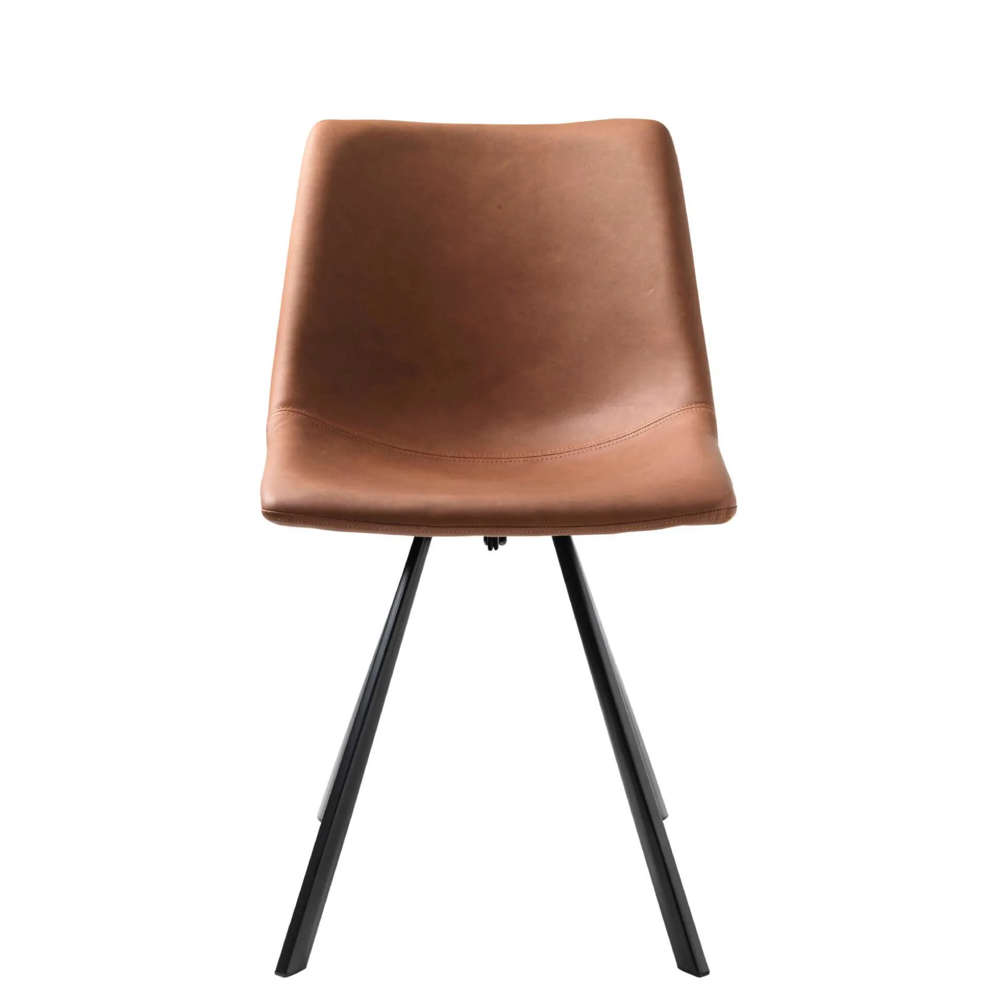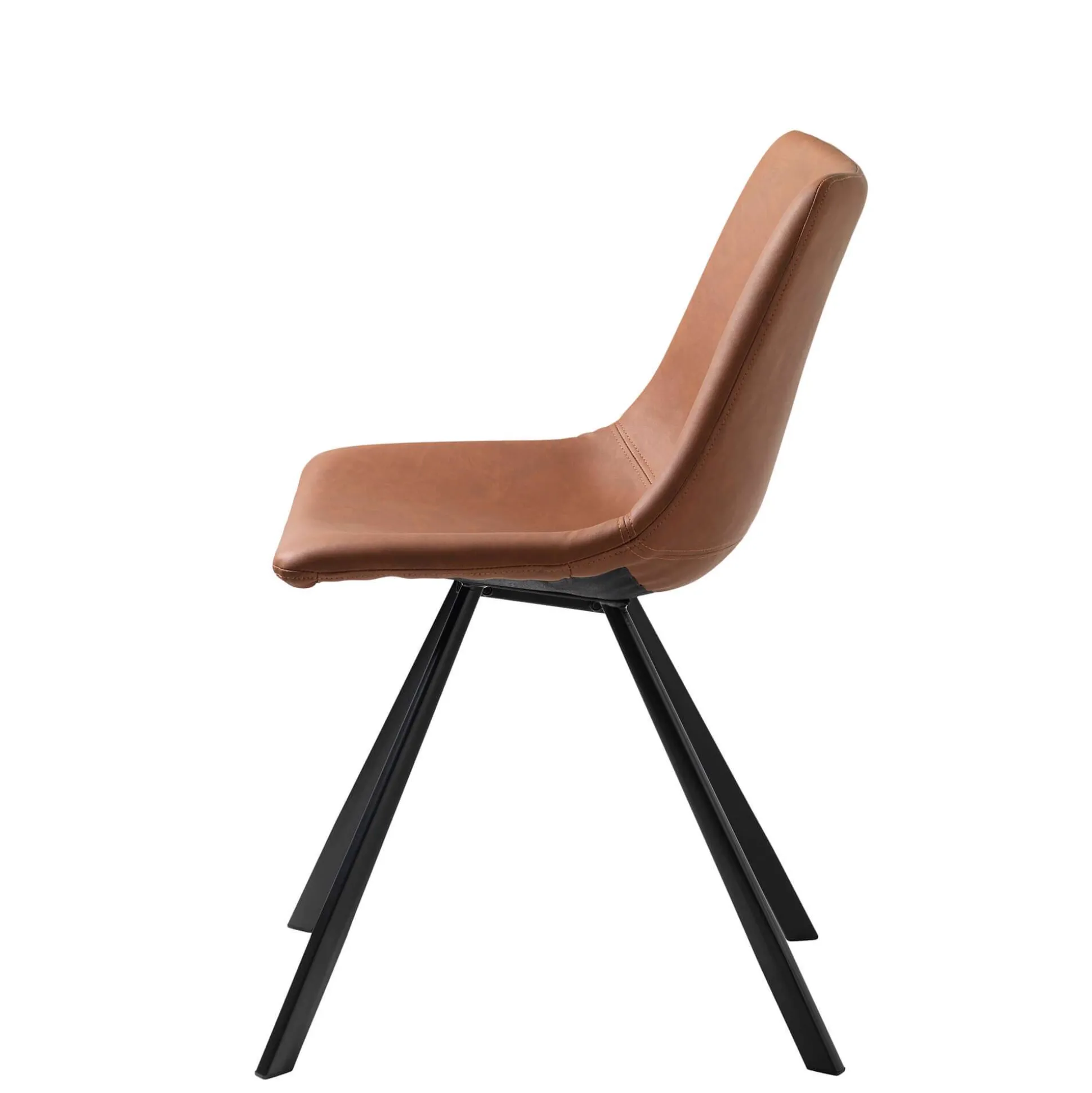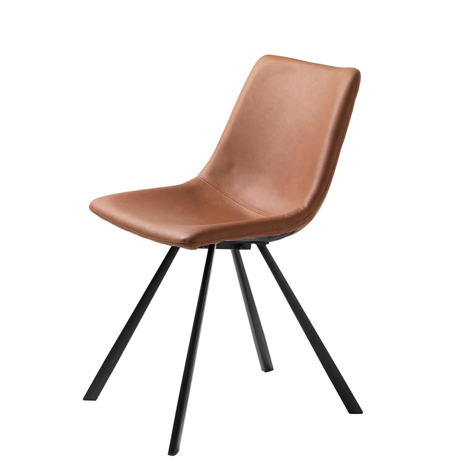 Calais stolen passer sig ind flere steder, om det er som kantinestol, mødestol eller spisebordsstol. Stolen har en solid krydsfinerskal som er polstret med skum og beklædt med cognacbrunt kunstlæder. Stolen har et kraftigt stel i lakeret metal, stellet kommer samlet og monteres med 4 skruer. Mindstekøb 2 stk.