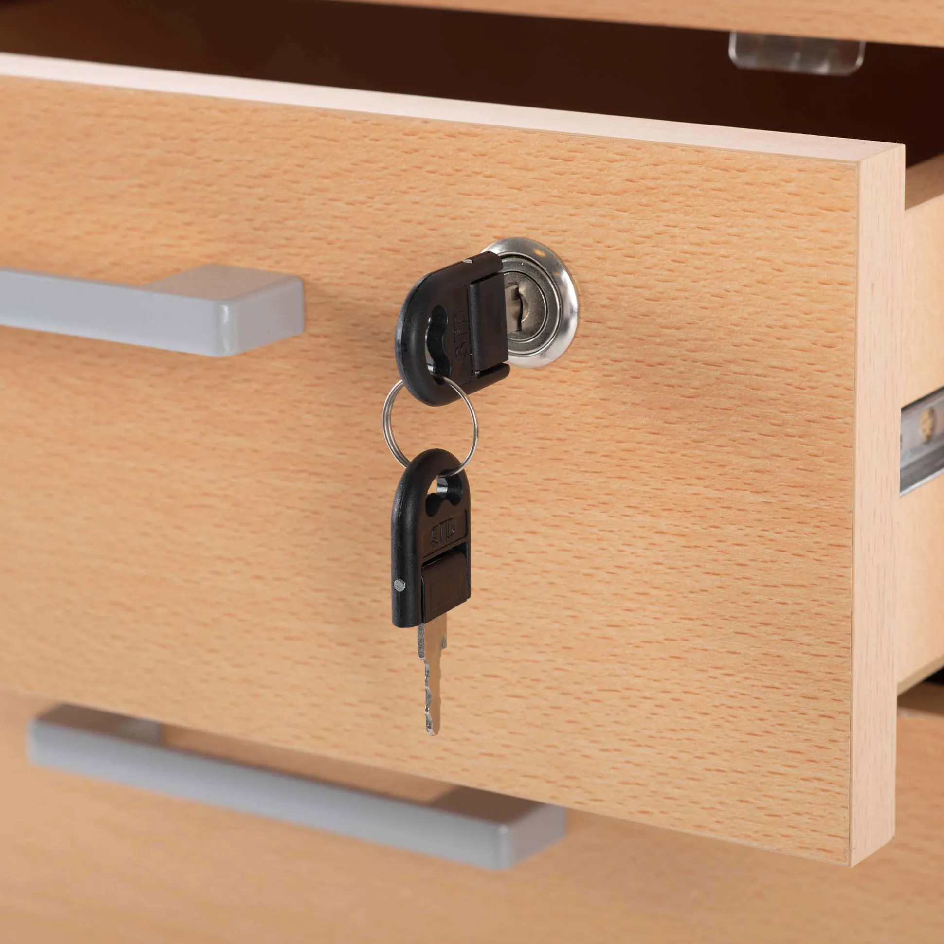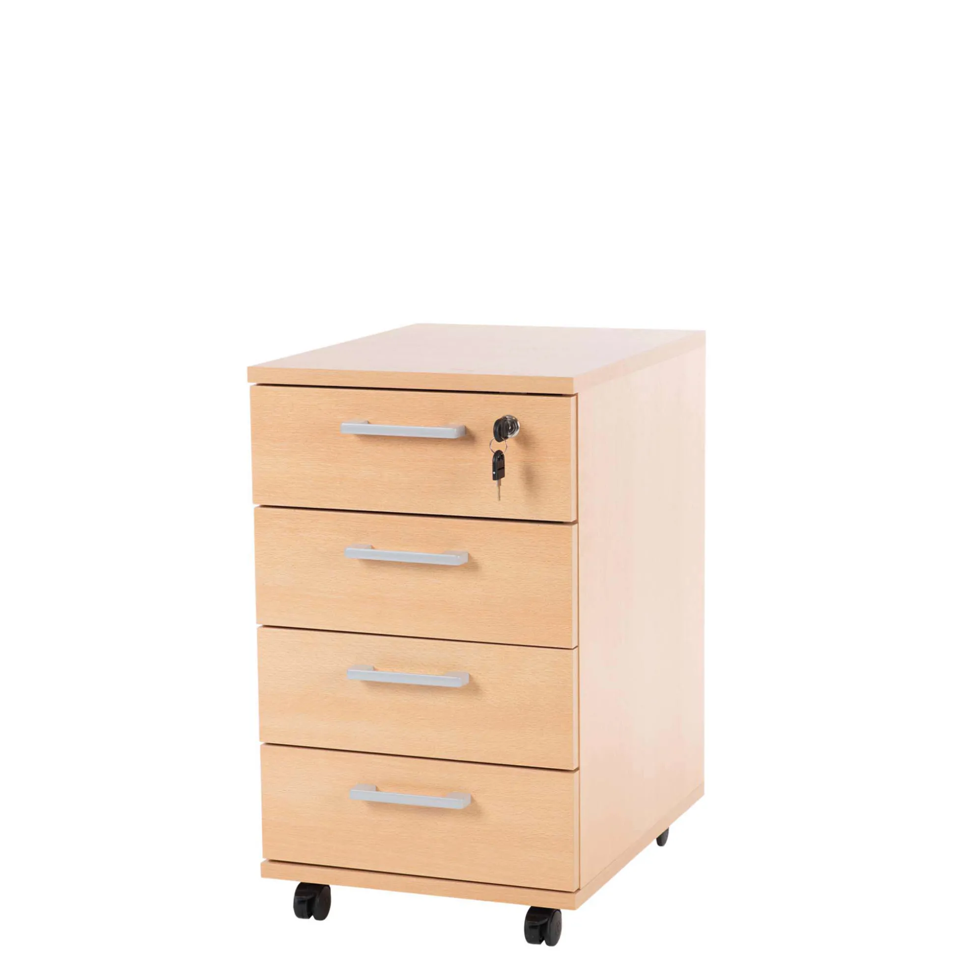 Denne praktiske ECO X skuffekassette er med 4 skuffer. Øverste skuffe er med lås og man kan med fordel tilkøbe en pennebakke til sine småting. Skuffekassetten ankommer samlet, du skal blot montere hjul og greb.