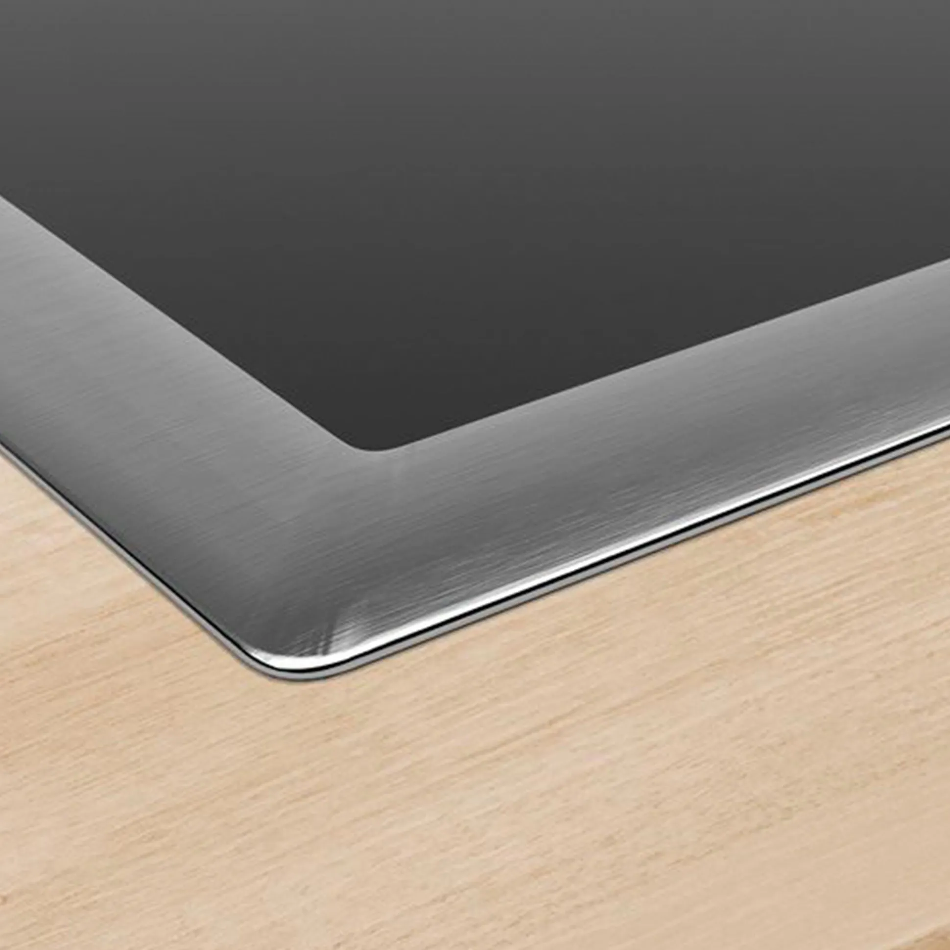 Bosch PKE645BB2E er en elegant sort keramisk kogeplade med en rustfri stålramme og TouchSelect-betjening. Denne 60 cm brede kogeplade kombinerer moderne design med funktionalitet for en optimal madlavningsoplevelse.