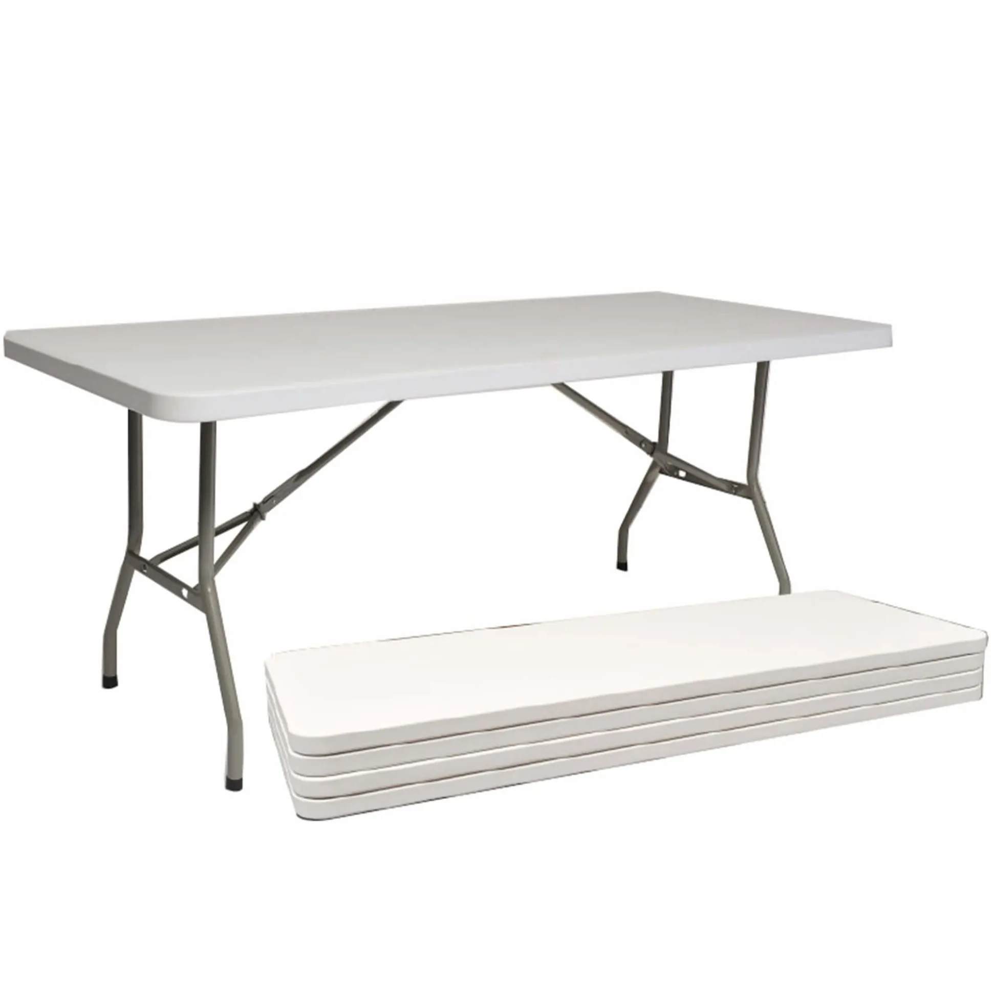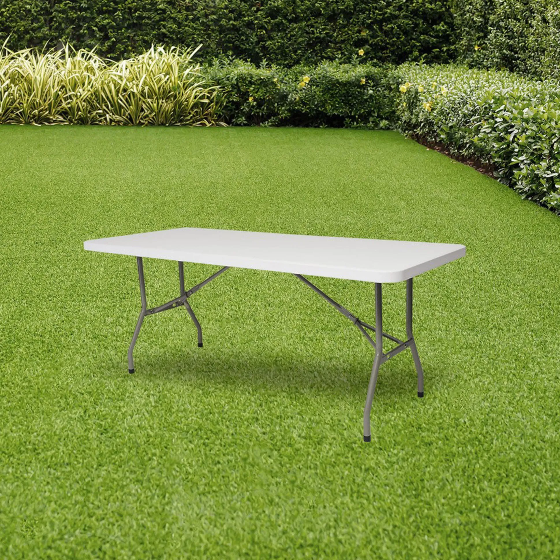 American klapbord 76×152 cm til 4 personer. Klapbordet er med et letvægts-stålstel og en helstøbt bordplade i hvid plast. Perfekt til både uden- og indendørsfester.