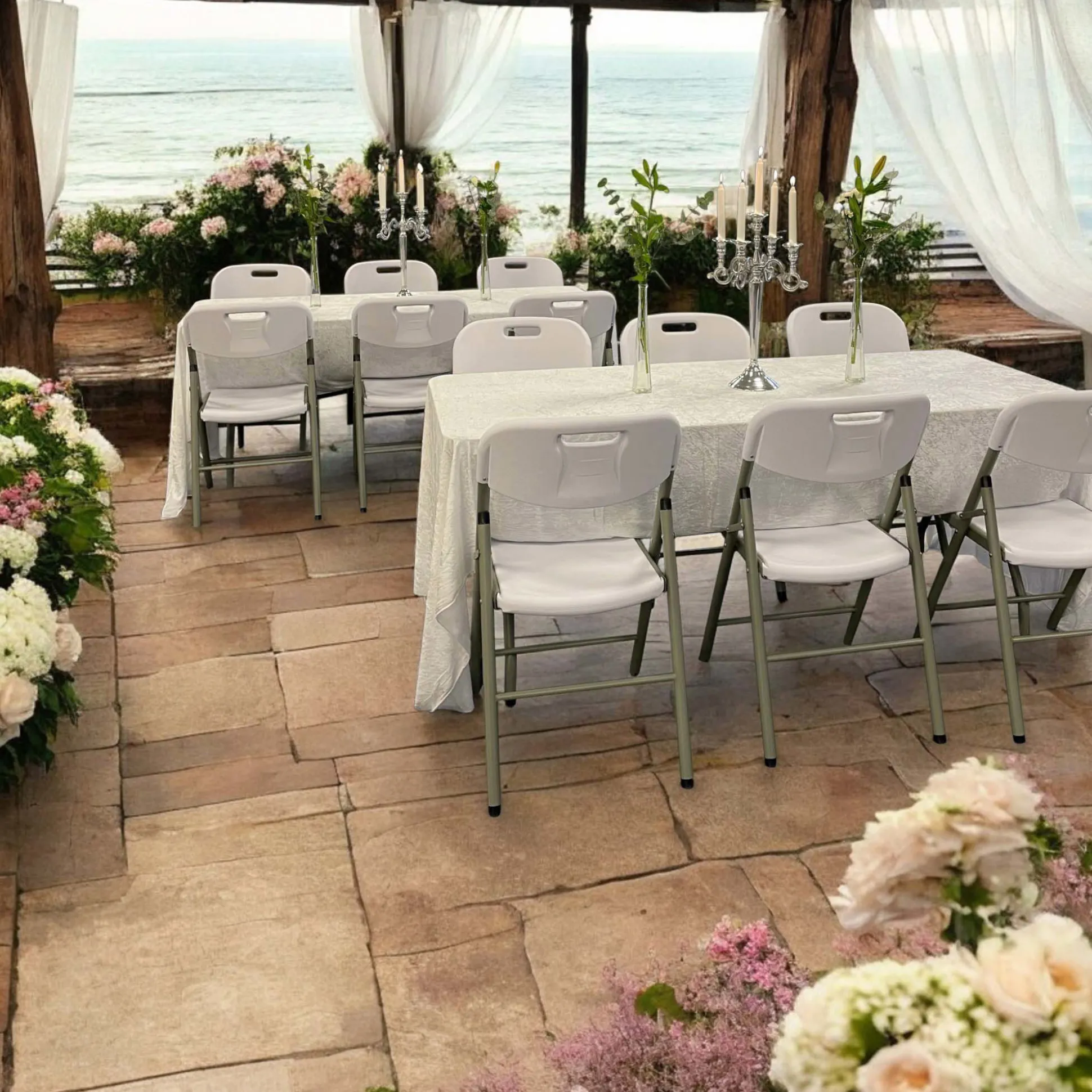 American klapbord 76×183 cm til 6 personer. Klapbordet er med et letvægts-stålstel og en helstøbt bordplade i antracit plast. Perfekt til både uden- og indendørsfester.