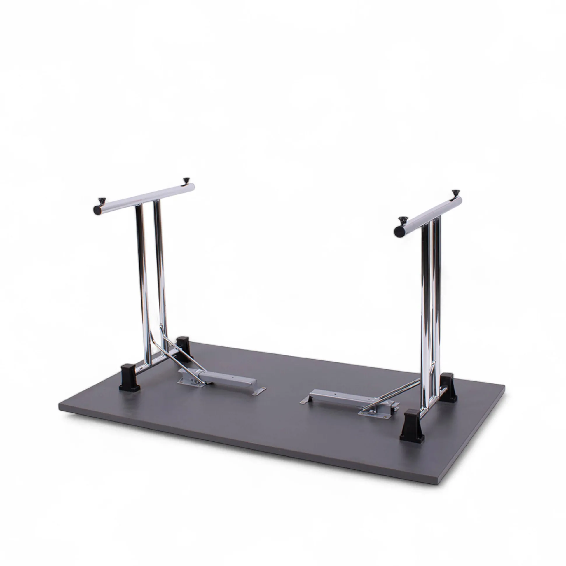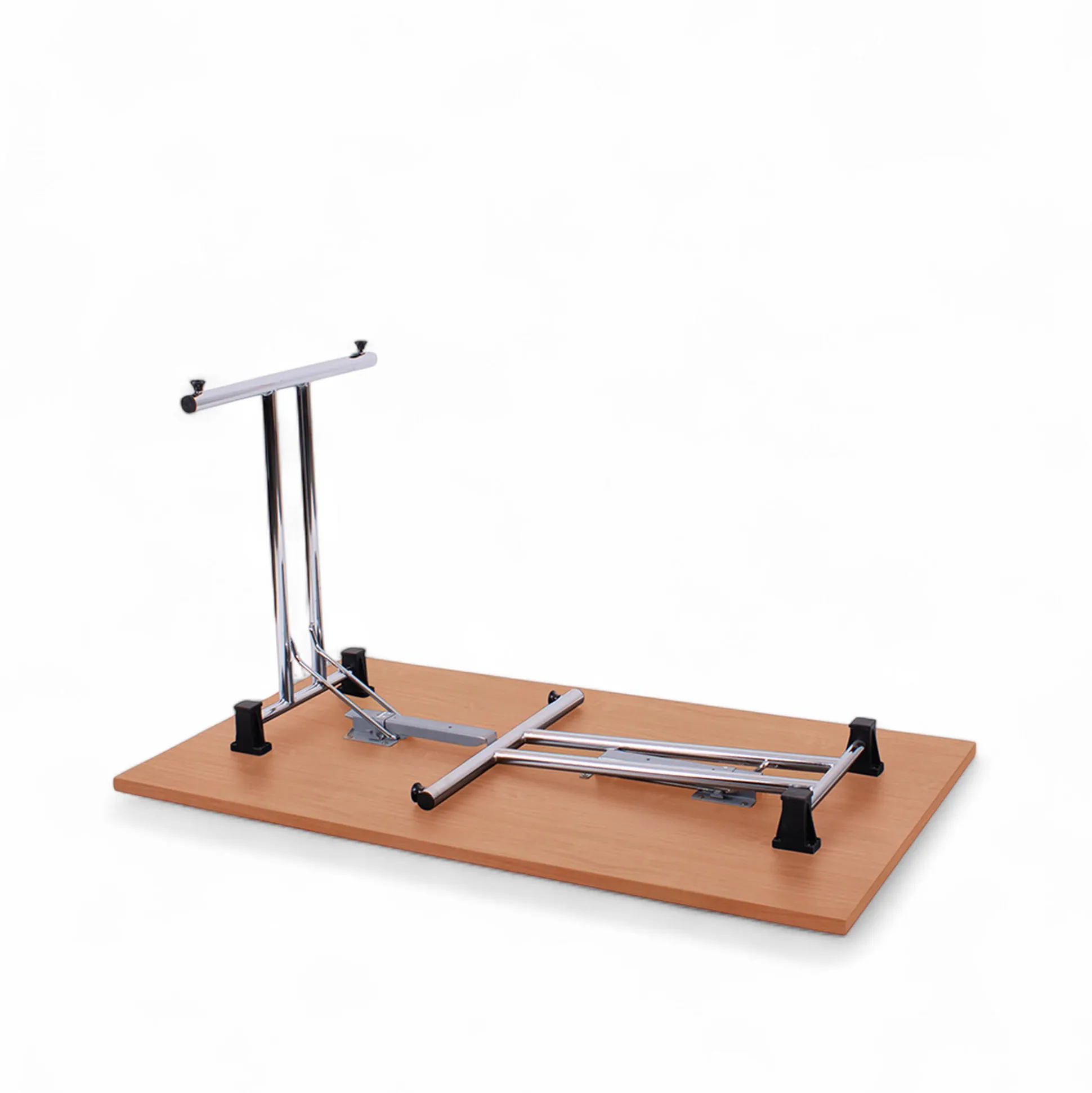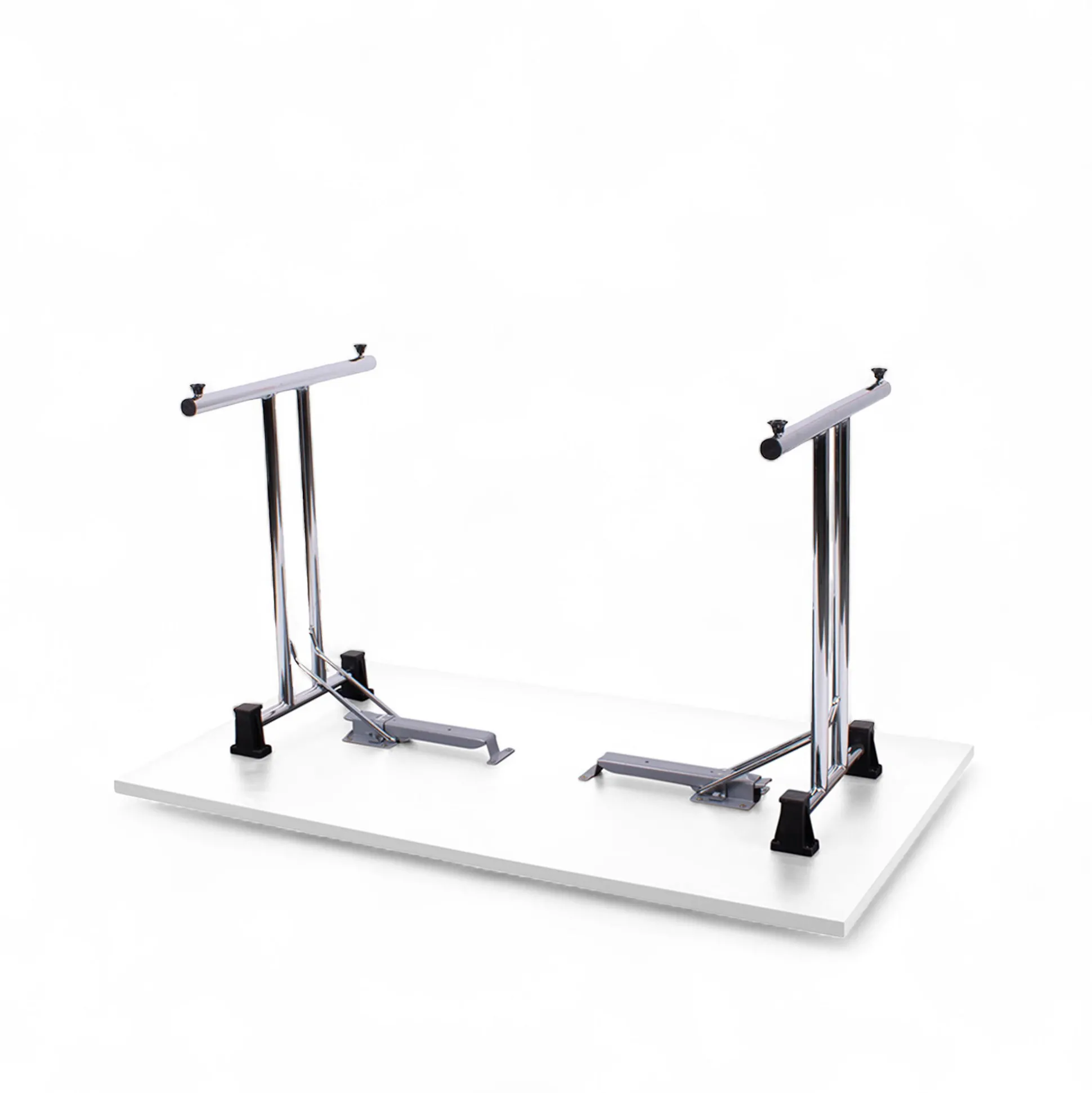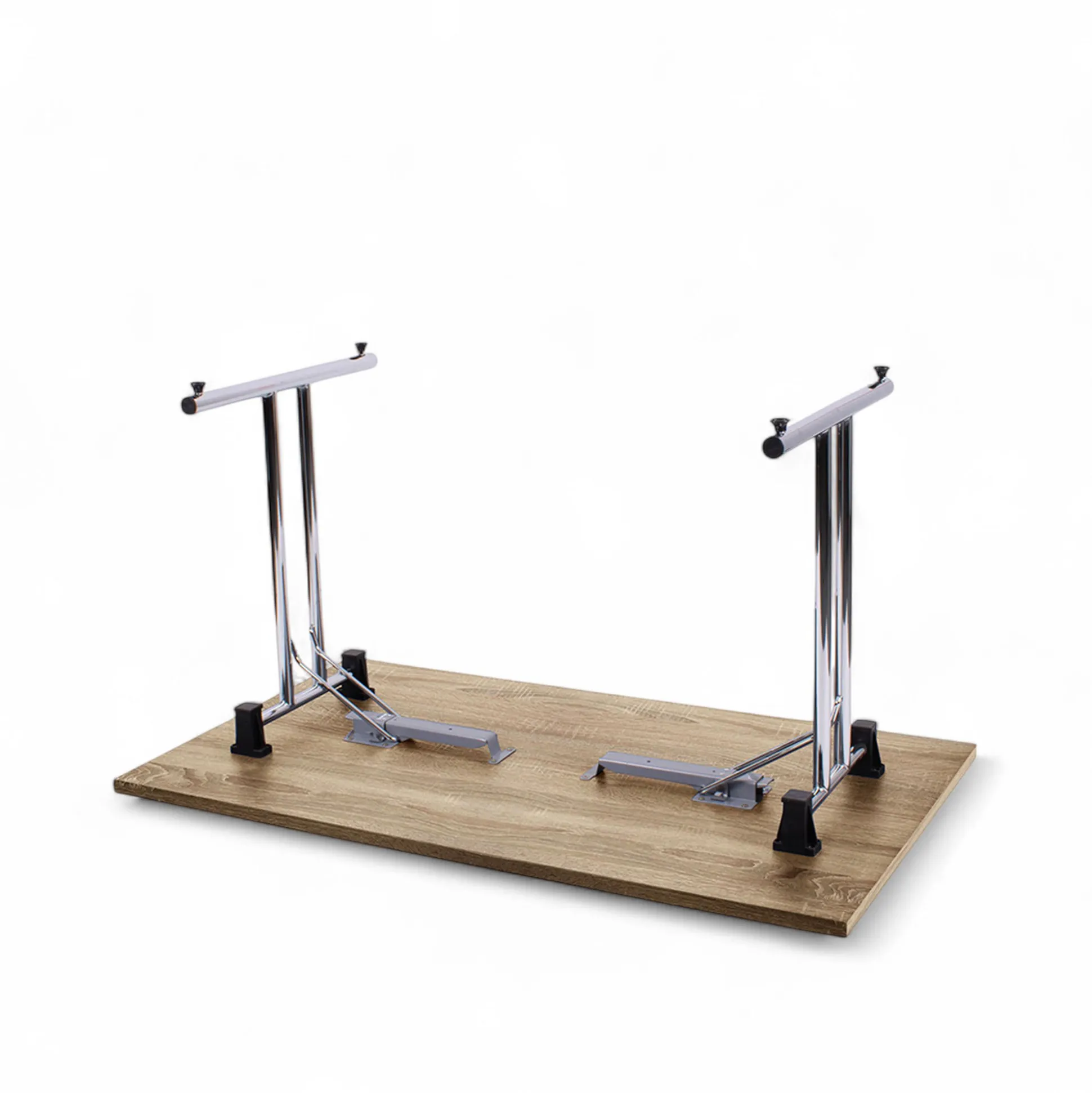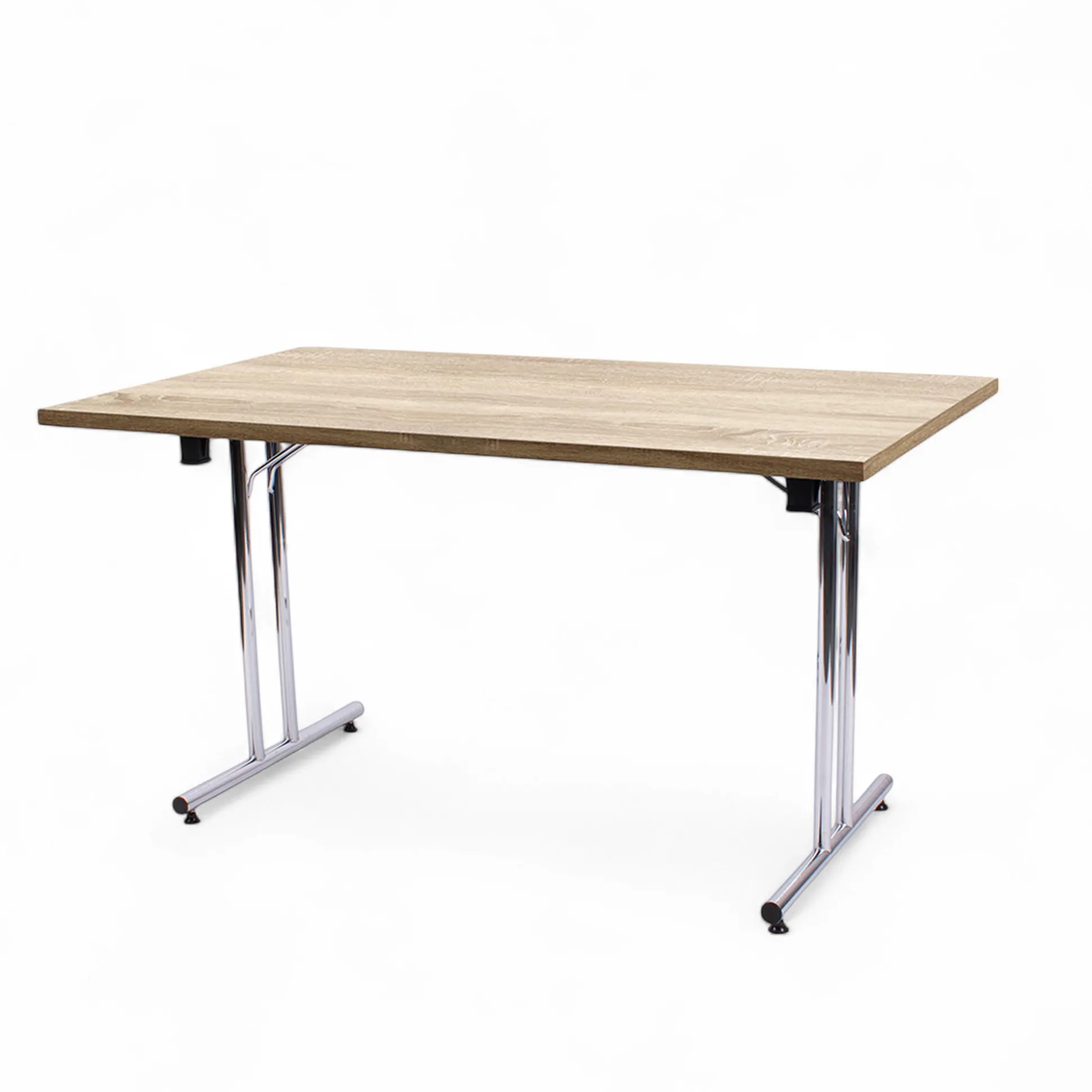 Stabelfix Lux II klapbordet, består af en ekstra kraftig decor laminatplade på hele 28mm, og et robust stel i blankt stål. Bordet kan let klappes sammen, stables og flyttes væk. Dette bord er velegnet til 6 personer og leveres samlet, og klar til brug. Klapbordet har justerbare fødder som giver øget stabilitet på ujævne overflader.