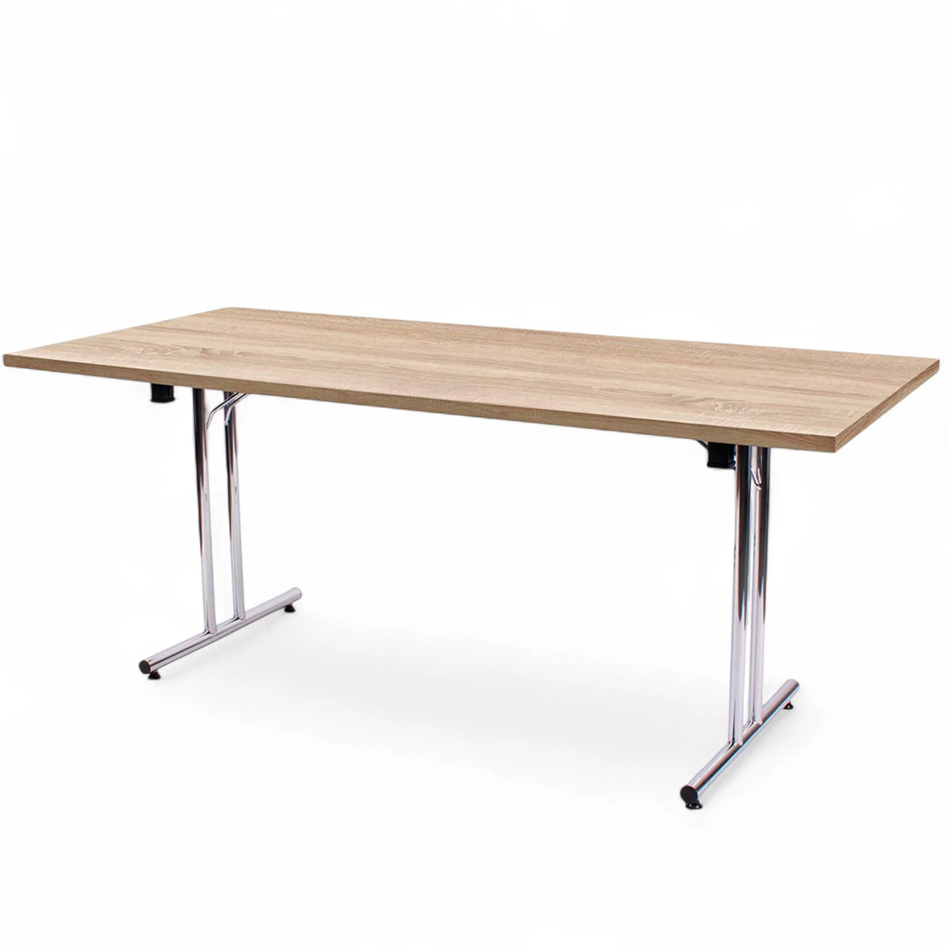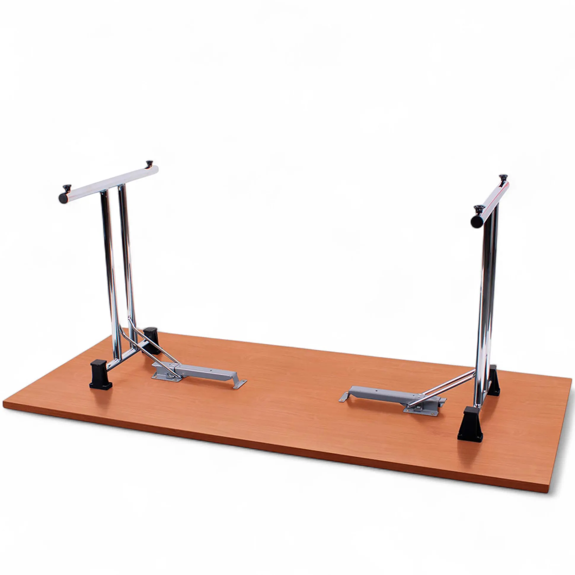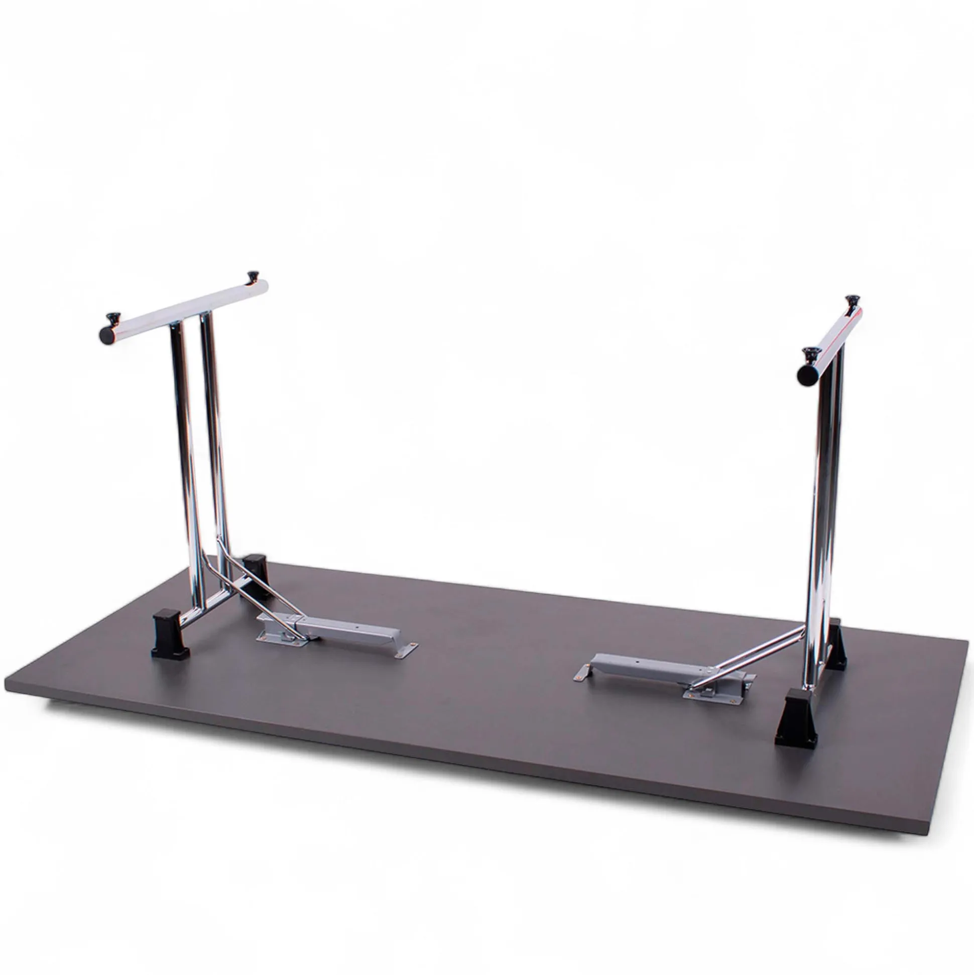 Stabelfix Lux II klapbordet, består af en ekstra kraftig decor laminatplade på hele 28mm, og et robust stel i blankt stål. Bordet kan let klappes sammen, stables og flyttes væk. Dette bord er velegnet til 6 personer og leveres samlet, og klar til brug. Klapbordet har justerbare fødder som giver øget stabilitet på ujævne overflader.