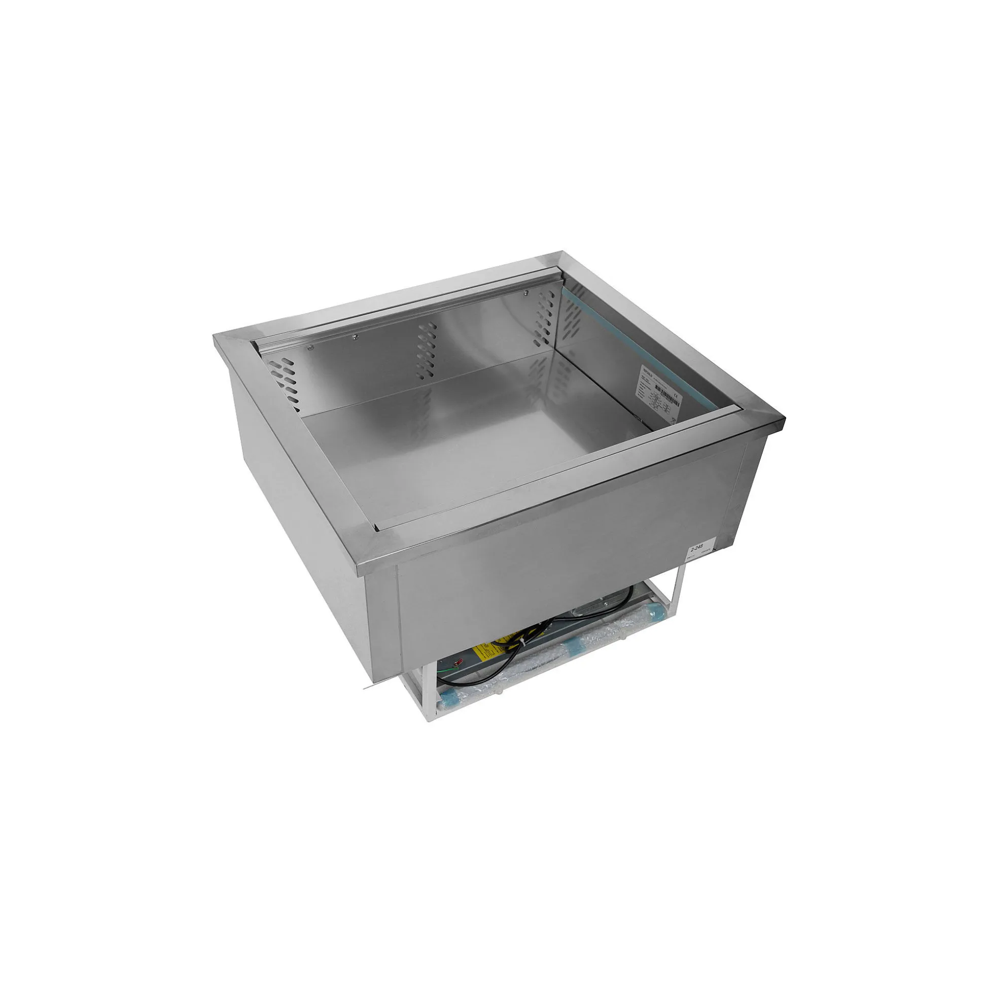 CW2/V kølebrønden er en robust og effektiv løsning til opbevaring af fødevarer i storkøkkener. Kølebrønden er fremstillet i rustfrit stål og designet til at tage GN1/1 kantiner (ikke inkluderet), hvilket gør den ideel til en række forskellige anvendelser.