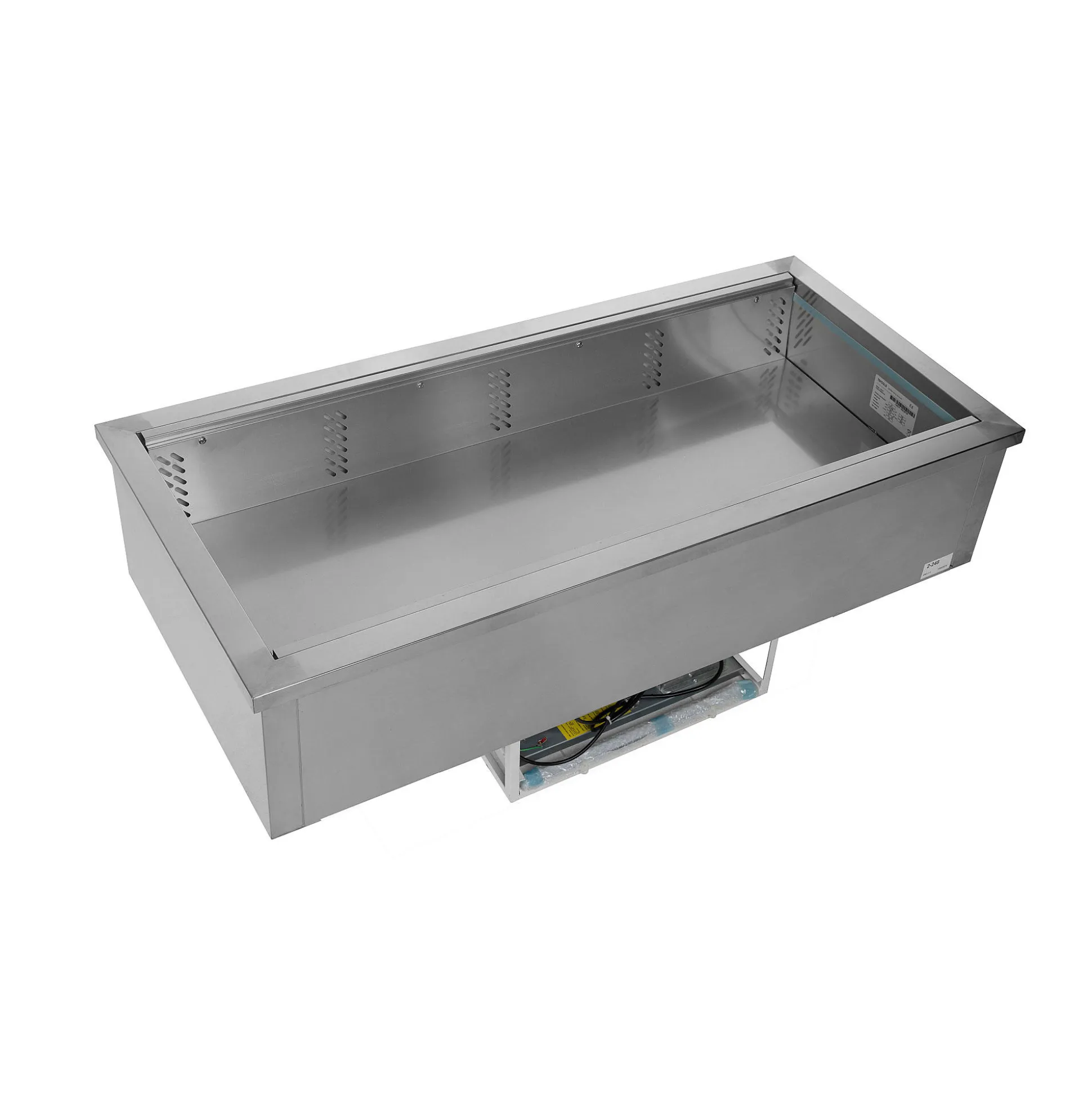 CW4/V kølebrønden er en robust og effektiv løsning til opbevaring af fødevarer i storkøkkener. Kølebrønden er fremstillet i rustfrit stål og designet til at tage GN1/1 kantiner (ikke inkluderet), hvilket gør den ideel til en række forskellige anvendelser.