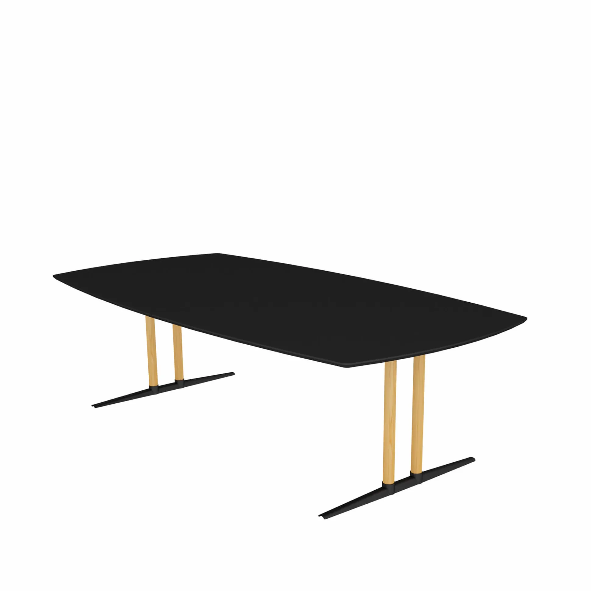 Kendetegnet ved vores eksklusive Executive borde er deres to slanke søjler på en enkel og stilren fod, samt er de med ekstra bredde bådformede bordplader i nanolaminat. Det eksklusive ‘Shaker-stel’ tilbydes i mange farver og kombinationer som hvid, alu, krom, sort eller mix søjler og fødder. Du har endvidere mulighed for at vælge søjler i massivt egetræ, der er klarlakeret, hvidlakeret eller sortlakeret. Bordet her er med sorte søjler, samt sorte fødder og en bådformet nanolaminat bordplade i 150/130×250 cm.