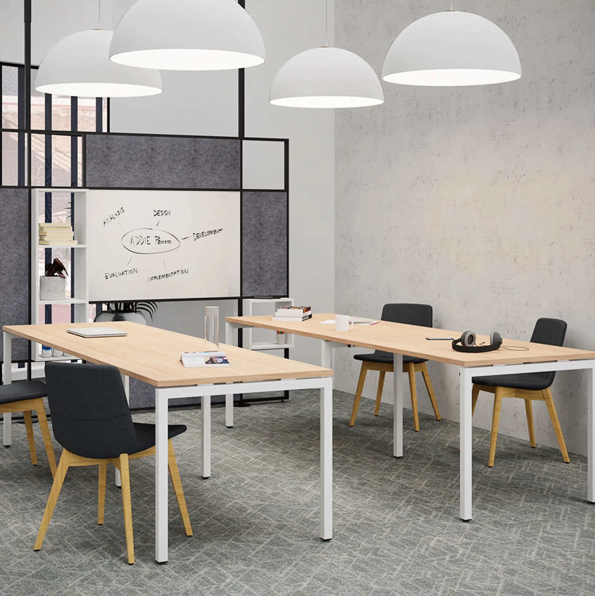 Monik konferencebord er et stilrent bord med en slidstærk bordplade i decor laminat og hvidt stel. Bordet er perfekt til de mellem/store konference- og mødelokaler.