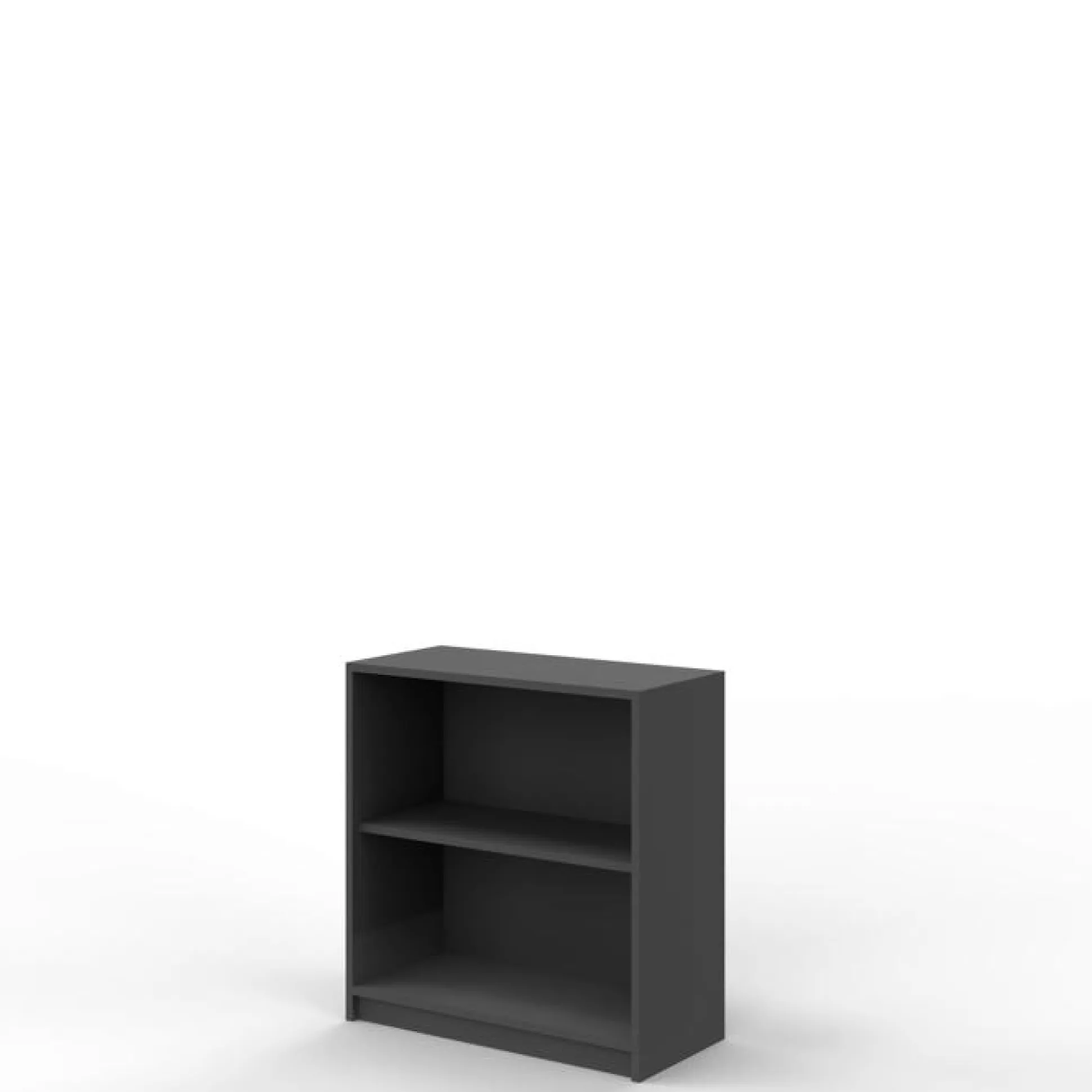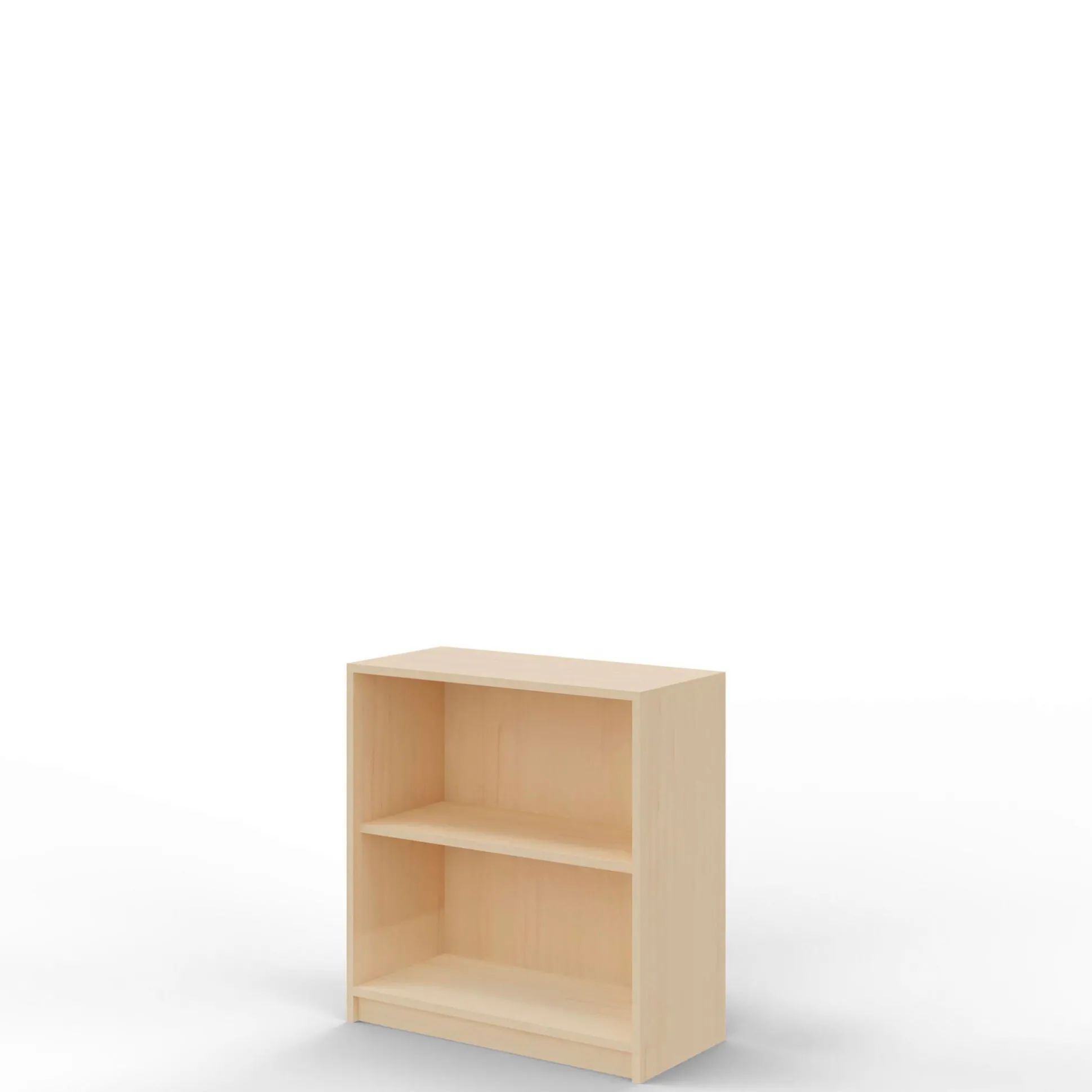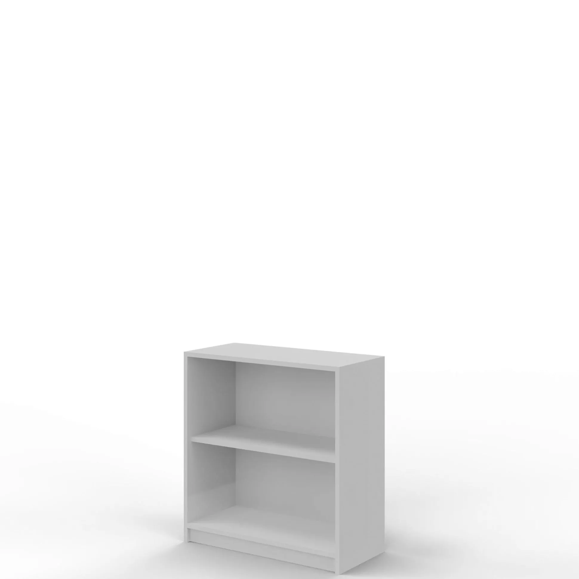 Den viste reol fås i flere farver og er lavet i enten slidstæk decor laminat eller naturligt træfinér. Den er 2 rum høj og med integreret sokkel.