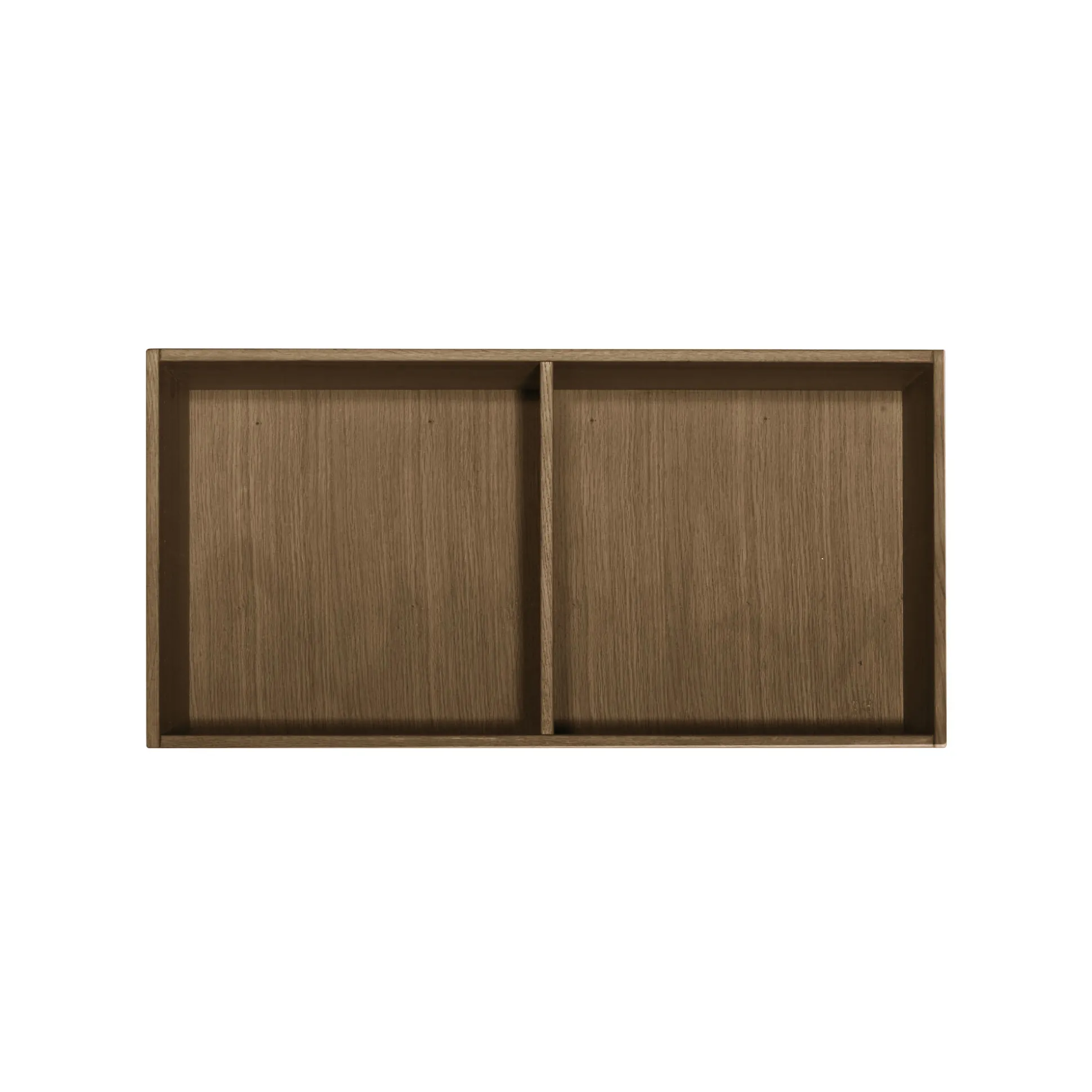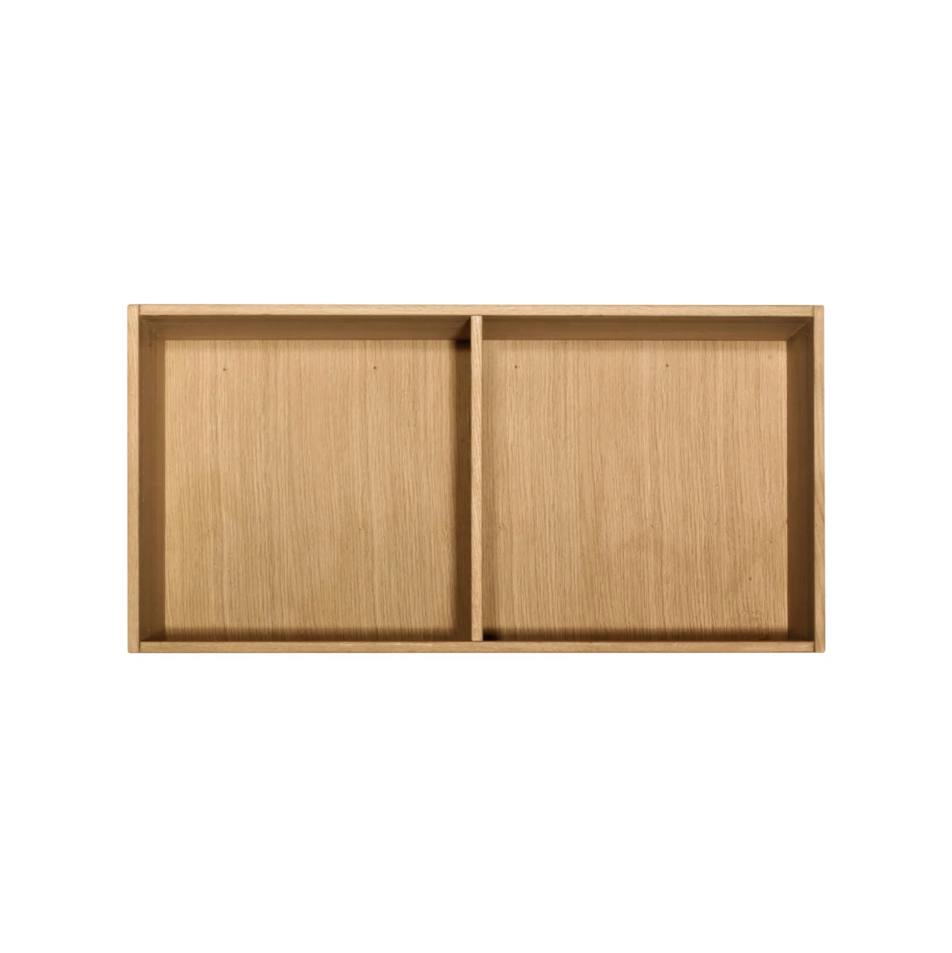 Elegant kontorreol i flot massiv eg. Reolen er fingertappet massiv eg og har 2 rum. Reolen kan hænges direkte op på din væg. Reolen leveres samlede. Kontorreolen har en dybde på 34 cm, hvilket betyder at den passer perfekt til A4 ringbind.