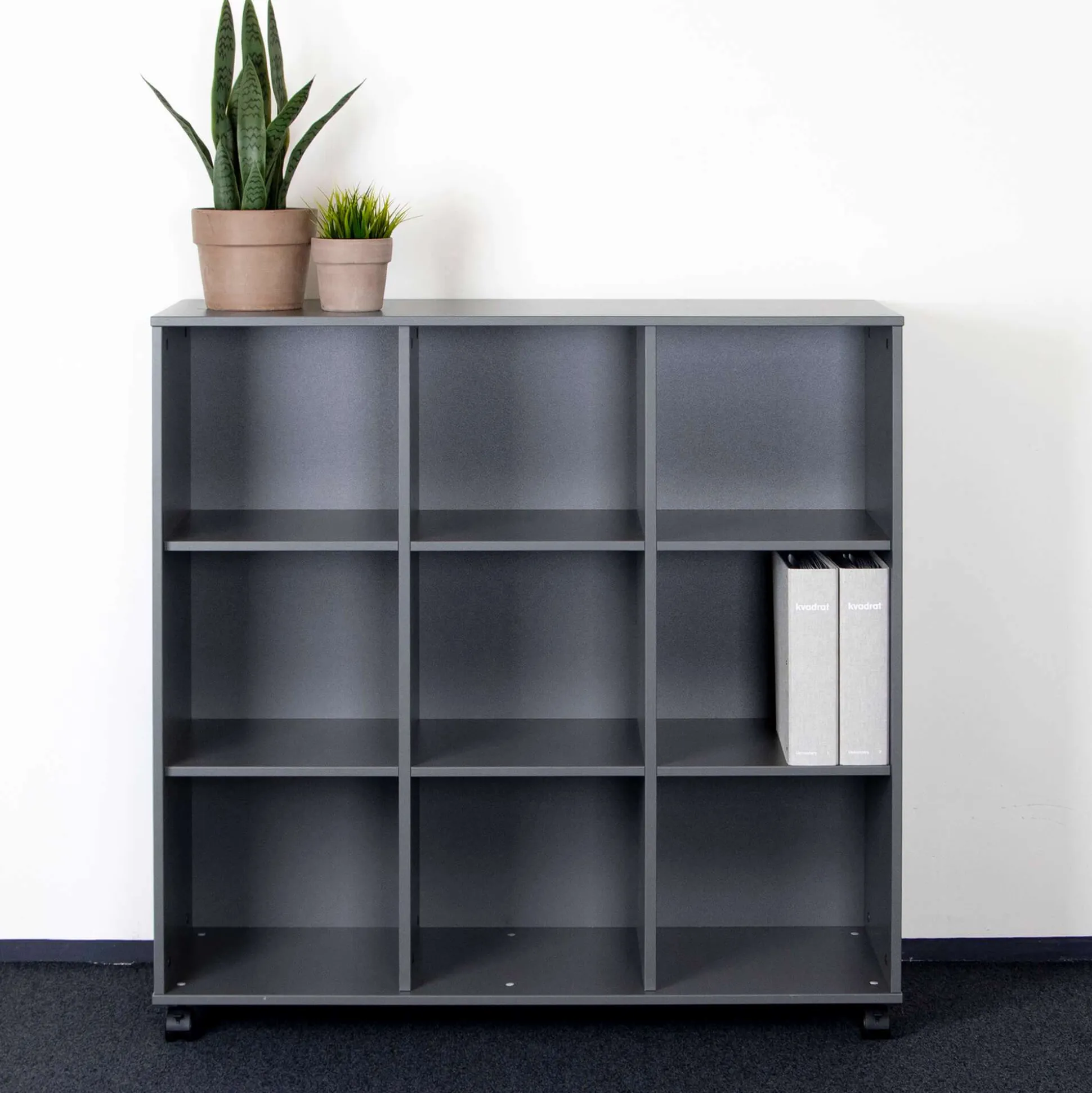 Denne EPF kontorreol er med 3×3 rum. Reolen er i slidstærk decor laminat og med hjul. Den leveres samlede og måler 38x118x116h cm.
