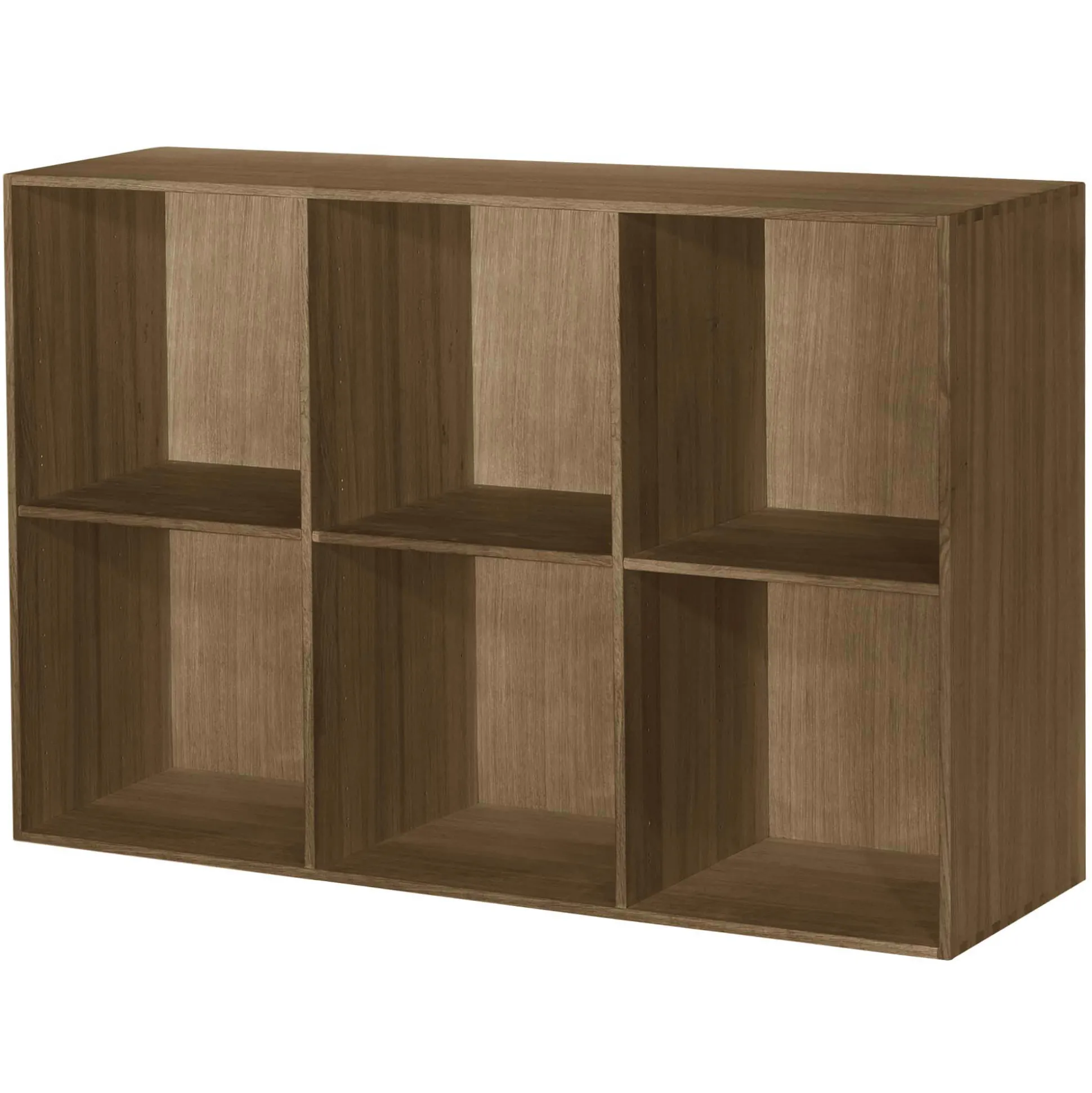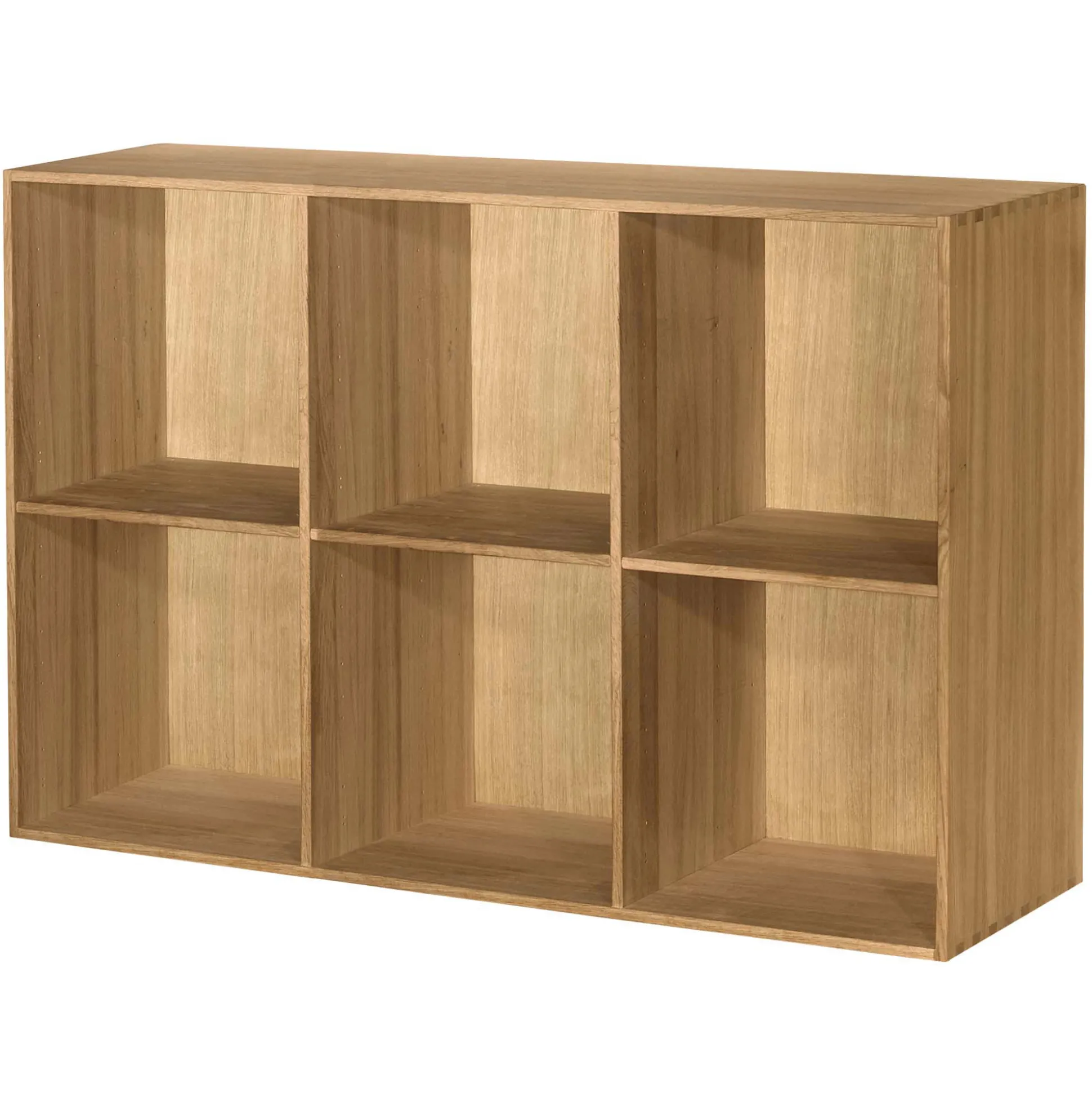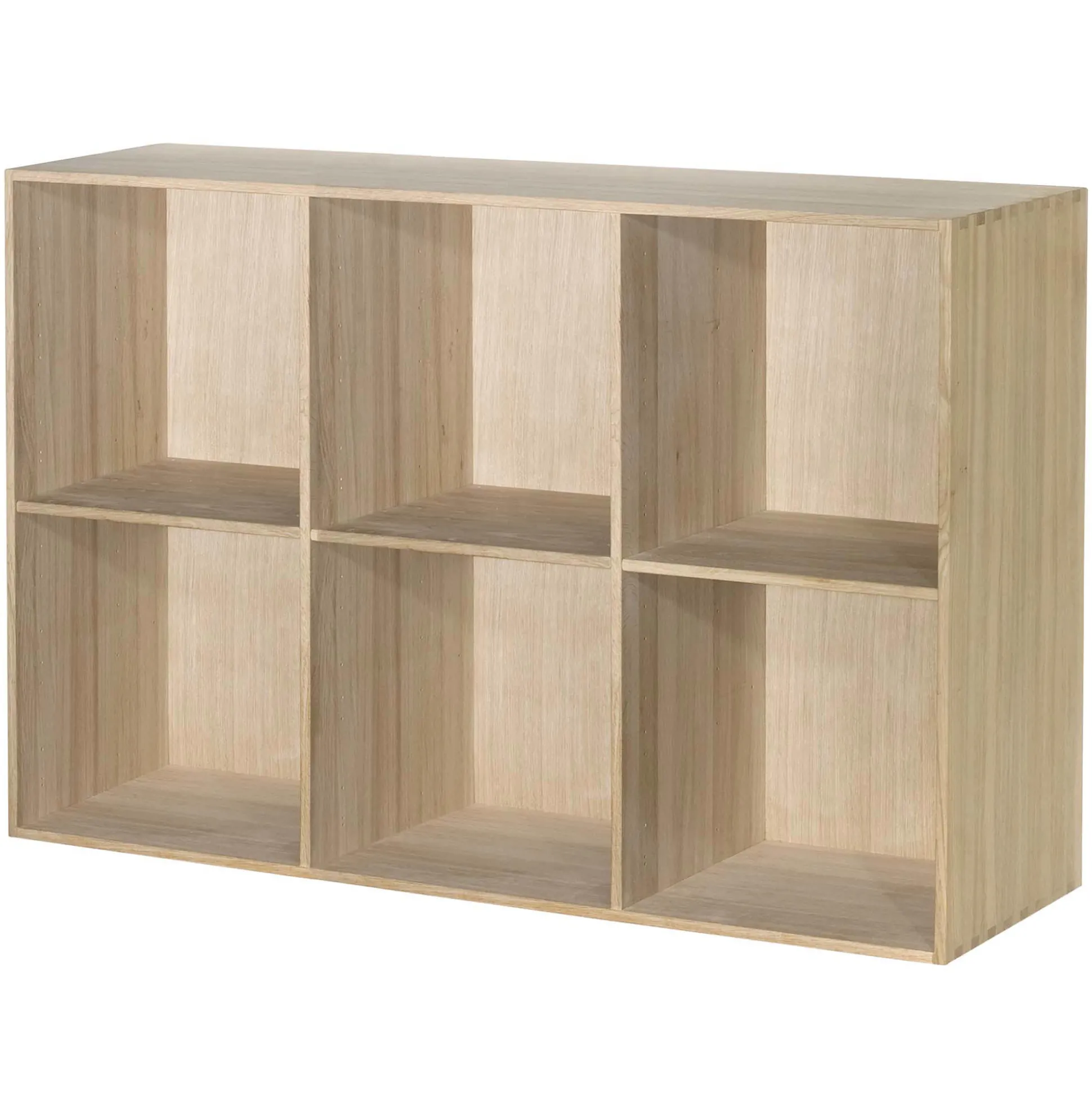 Elegant kontorreol i flot massiv eg. Reolen er fingertappet massiv eg og har 2×3 rum med tre flytbare hylder. Reolen kan hænges direkte op på din væg. Reolen leveres samlede. Kontorreolen har en dybde på 34 cm, hvilket betyder at den passer perfekt til A4 ringbind.