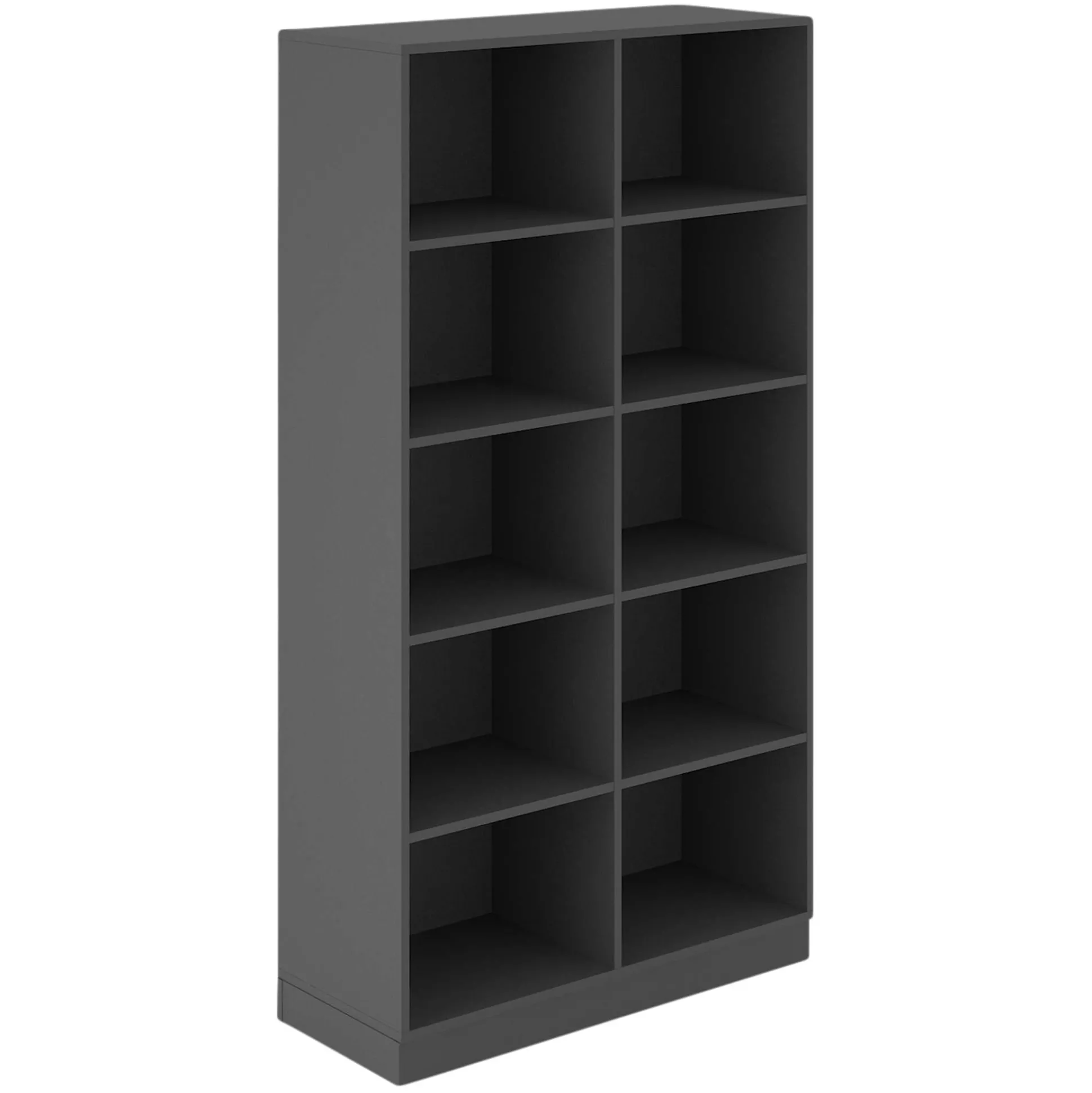 Denne kontorreol er med 10 rum, 8 faste hylder, den leveres samlet og er inkl. sokkel.