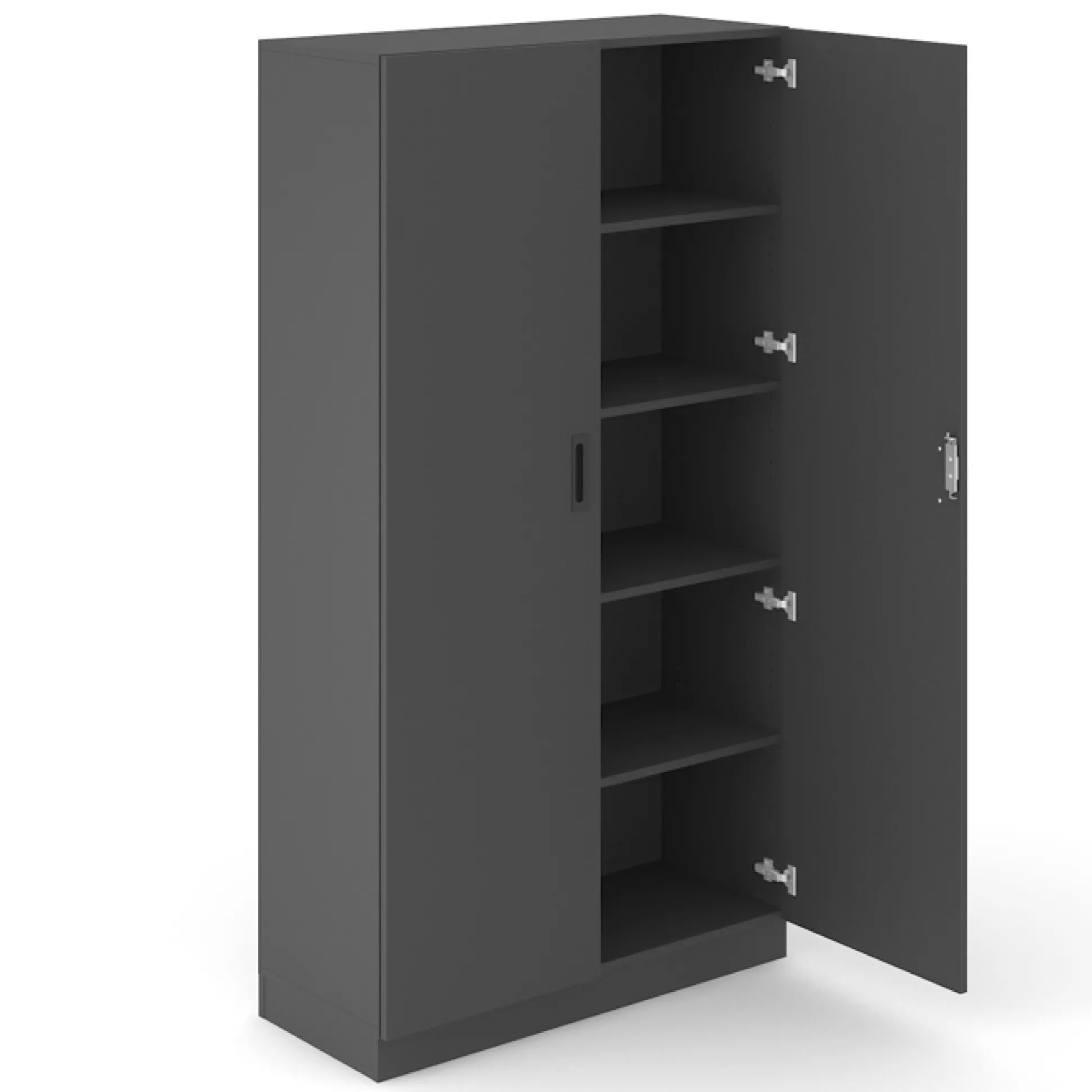New Choice skab med 5 rum og låger med lås. Skabet er udført i slidstærk decor laminat, og fås i flere forskellige størrelser. Det er perfekt til opbevaring af diverse mapper og andet, og fungerer også som rumdeler imellem arbejdspladser. Skabet fås i antracit, hvid eller eg.