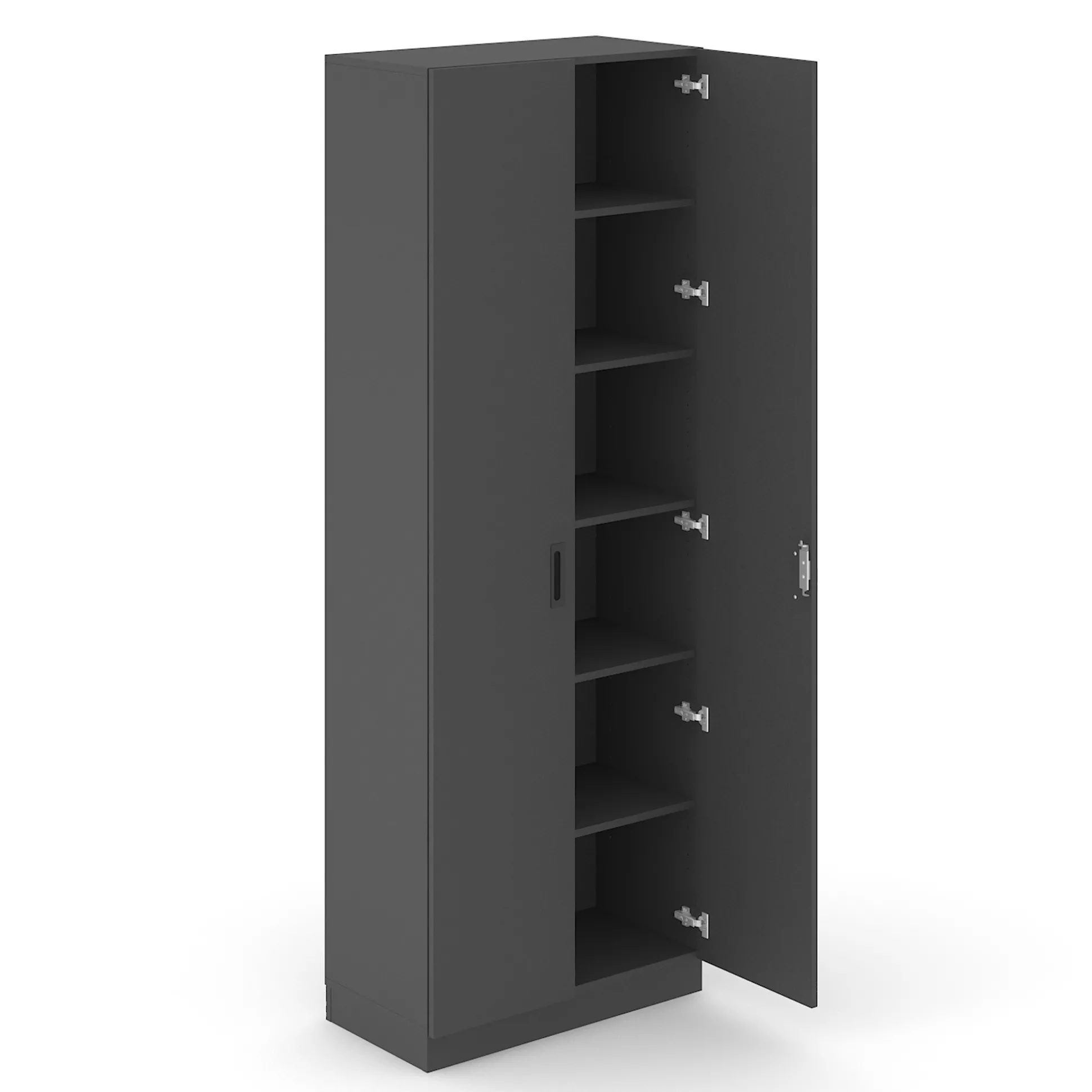 New Choice skab med 6 rum og låger med lås. Skabet er udført i slidstærk decor laminat, og fås i flere forskellige størrelser. Det er perfekt til opbevaring af diverse mapper og andet, og fungerer også som rumdeler imellem arbejdspladser. Skabet fås i antracit, hvid eller eg.