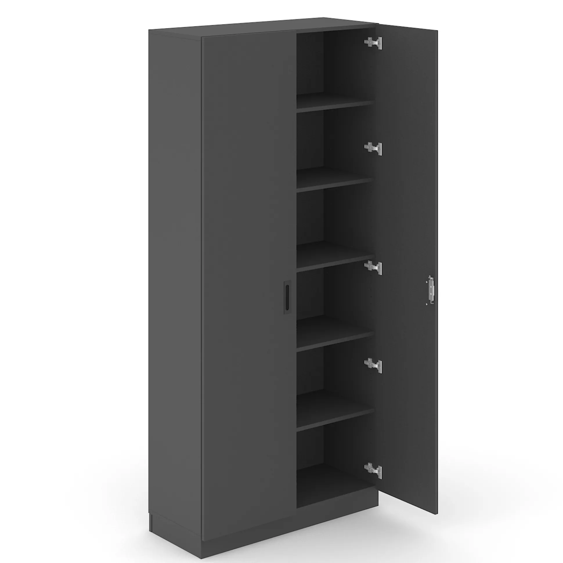 New Choice skab med 6 rum og låger med lås. Skabet er udført i slidstærk decor laminat, og fås i flere forskellige størrelser. Det er perfekt til opbevaring af diverse mapper og andet, og fungerer også som rumdeler imellem arbejdspladser. Skabet fås i antracit, hvid eller eg.