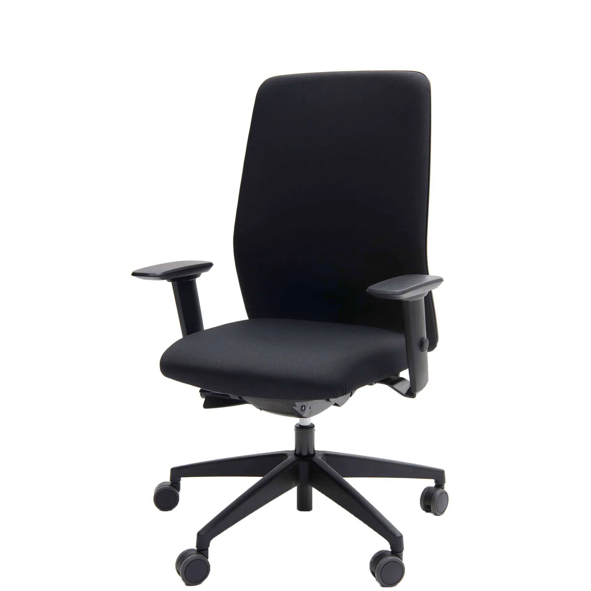 Aim 01 – 1S01 kontorstol med sort stofryg og sædet betrukket med sort Era-stof. En rigtig god all-round skrivebordsstol – made in Germany.