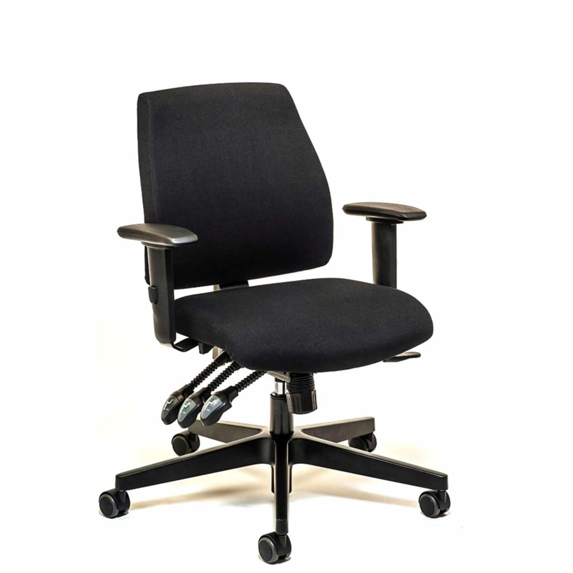 Stolen har højdejustering, vægtregulerbart og låsbart asynkront vip, højdejusterbar ryg og sædedybdejustering. Sædet kan hælde: -2⁰ til -17,1⁰.