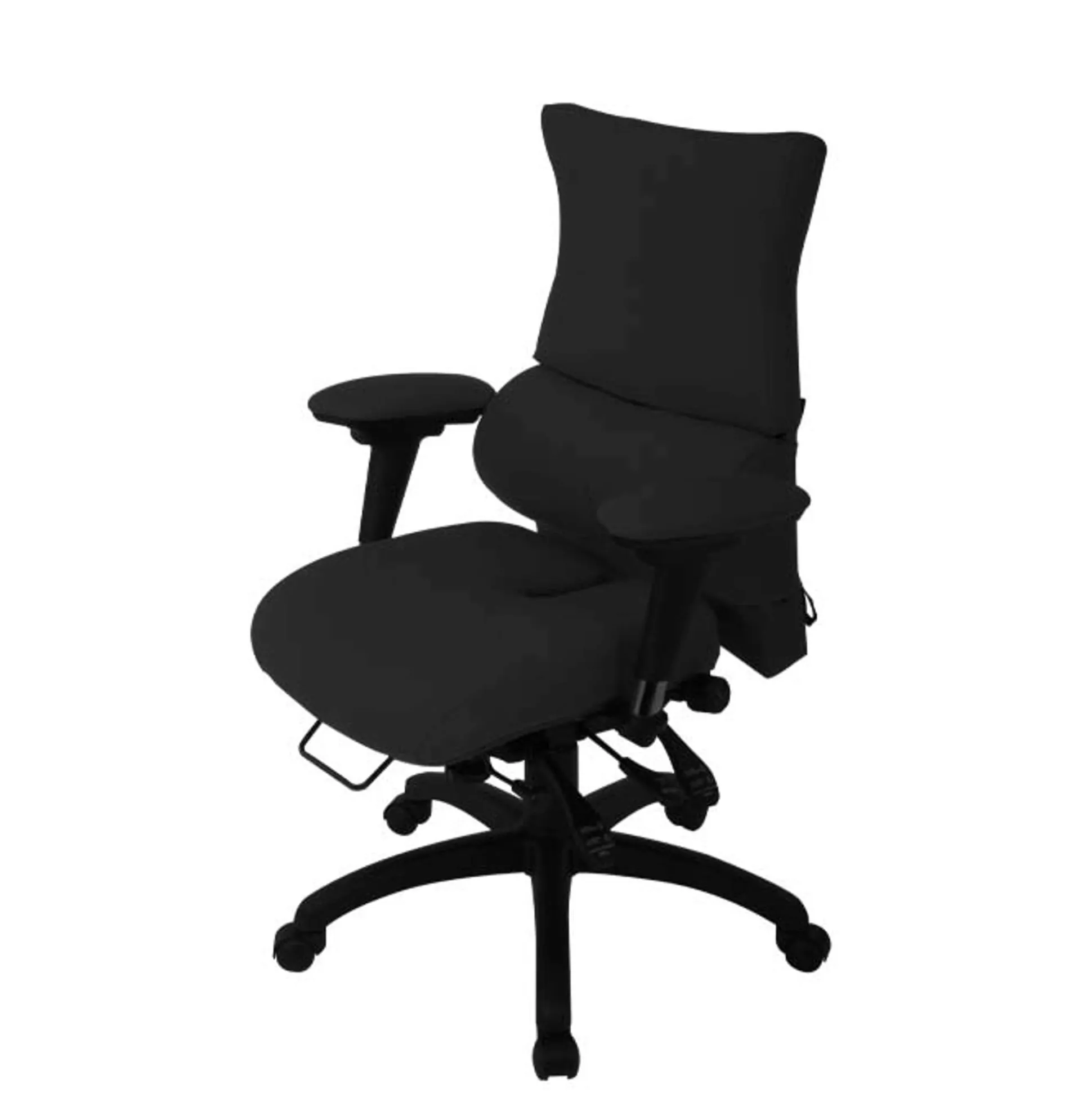 Ved korrekt siddestilling i den nederste del af ryggen, vil den øverste del af rygsøjlen (den thorakle del af ryggen) være placeret direkte over den nederste, for at give den bedste og mest behagelige anatomiske siddeposition. Den thorakle pumpe i stolens ryglæn sørger for støtte i den øvre del af ryggen ved skuldrene. Udskæring ved halebenet afhjælper trykket i det område.