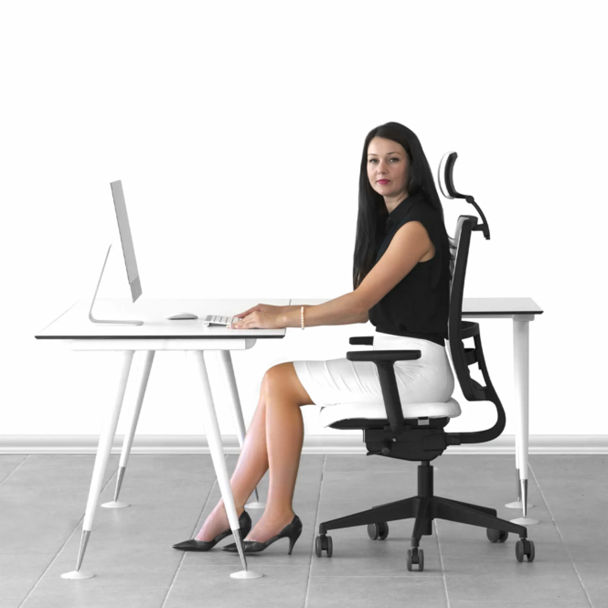 Work er en smart og moderne stol med en god siddekomfort. Stolen er betrukket med Event stof på sædet og Runner på ryggen. Dette gør at stolen fremstår let og smart. Stolen har mange indstillingsmuligheder såsom højdejustering, justerbar lændestøtte, synkronvip med mulighed for låsbar position, samt justerbar nakkestøtte. Fodkrydset på stolen er blank og har bløde hjul.