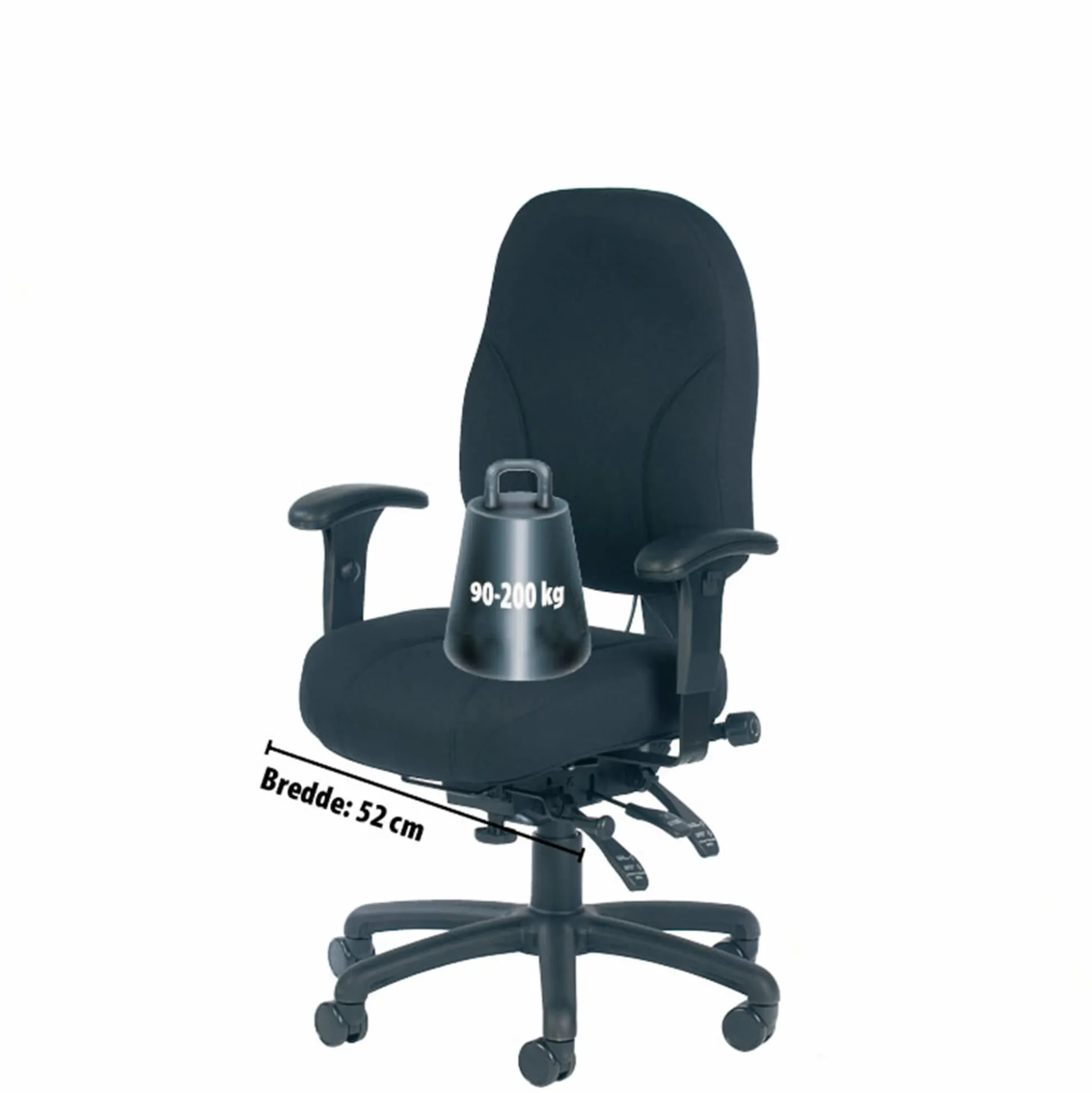 Med sædebredde på 52 cm. (andre XL-modeller op til 55 cm) får du et 7-10 cm. bredere sæde end på en traditionel kontorstol.