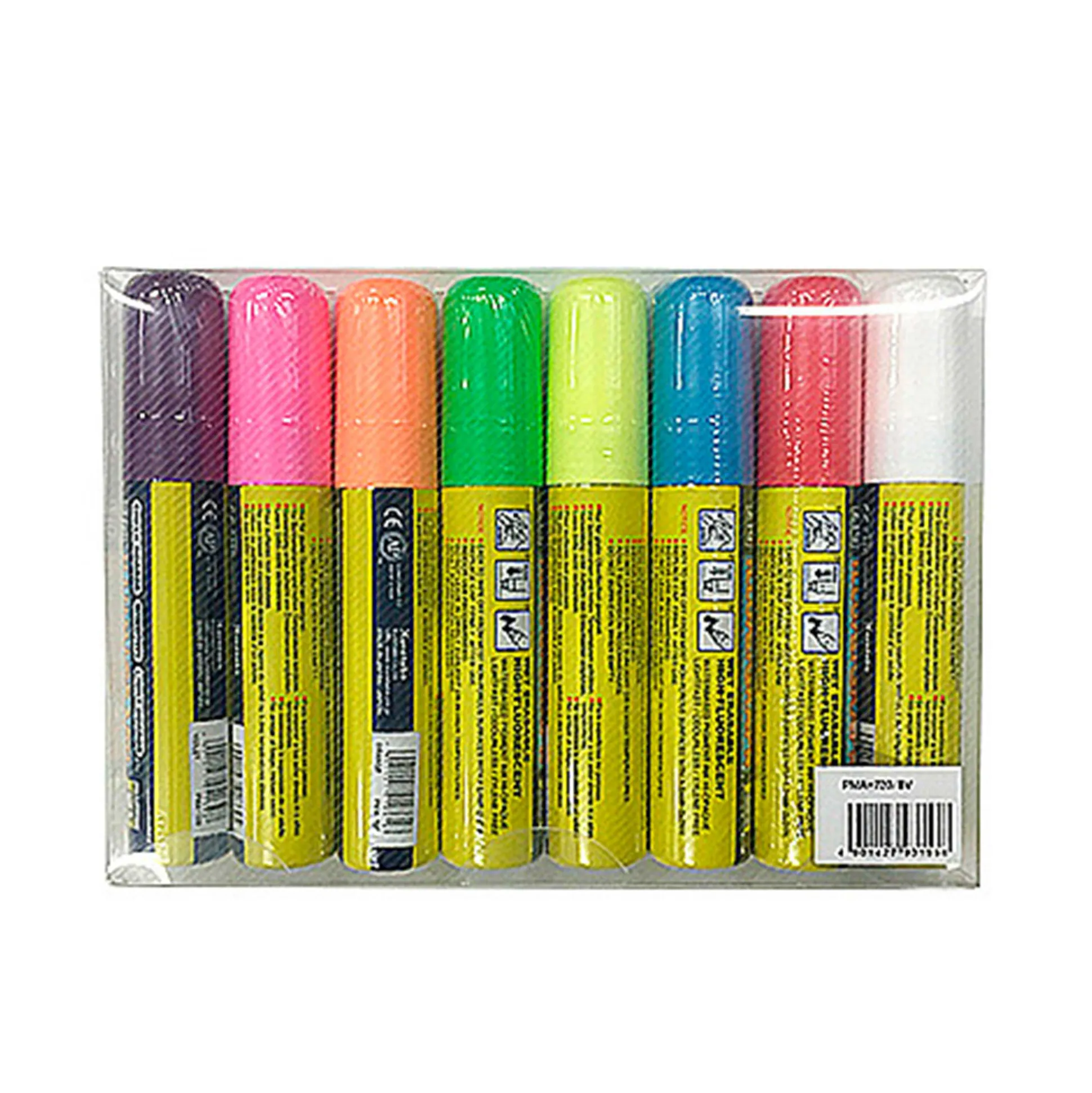 Kridttavle markers i 8 forskellige farver med en 15 mm spids. Velegnet til kridttavler med en stålplade, men passer til alle tavler. Kan også skrive på vinduesglas og andre ikke-porøse overflader. Fjernes med klud og vand. Vælg mellem 2 forskellige tykkelser: 6 og 15 mm.