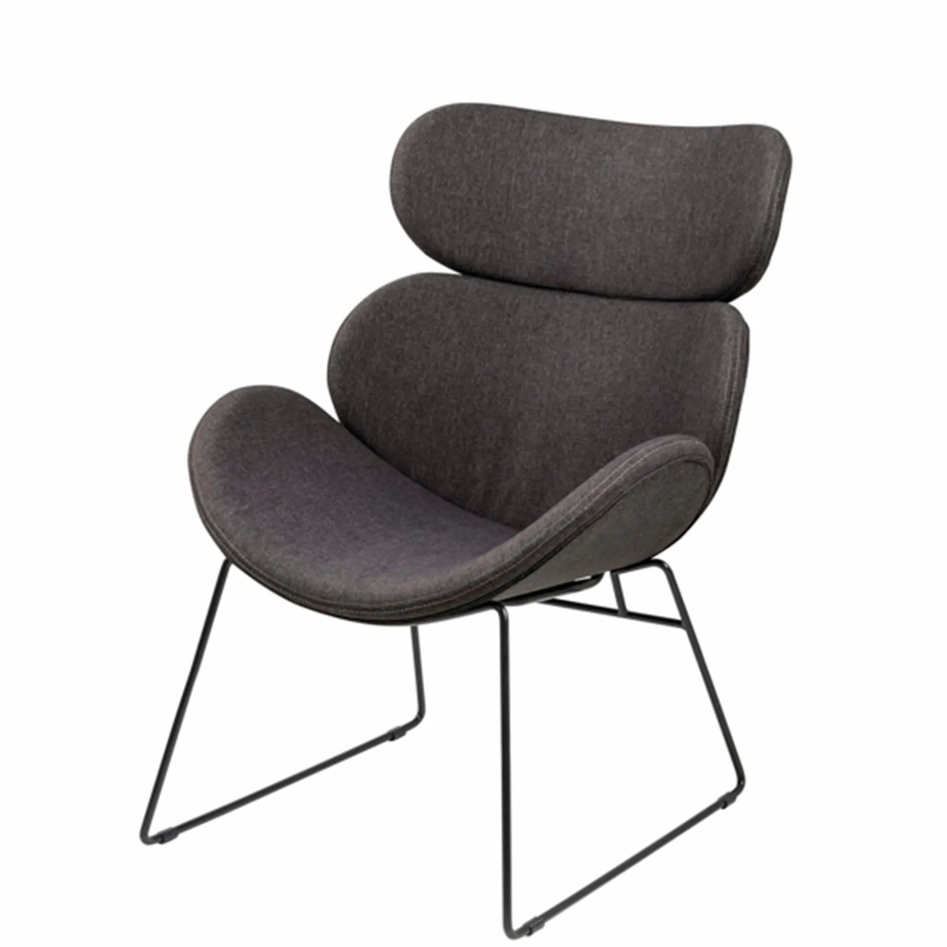 Eclipse er lænestol der virkelig skiller sig ud, med sine flotte rummelige former. Men udover flot design er lænestolen også rigtig god at sidde i. Stolen er polstret med mørkegråt stof, der let kan rengøres. Den svæver let over gulvet på elegant medestel i sort