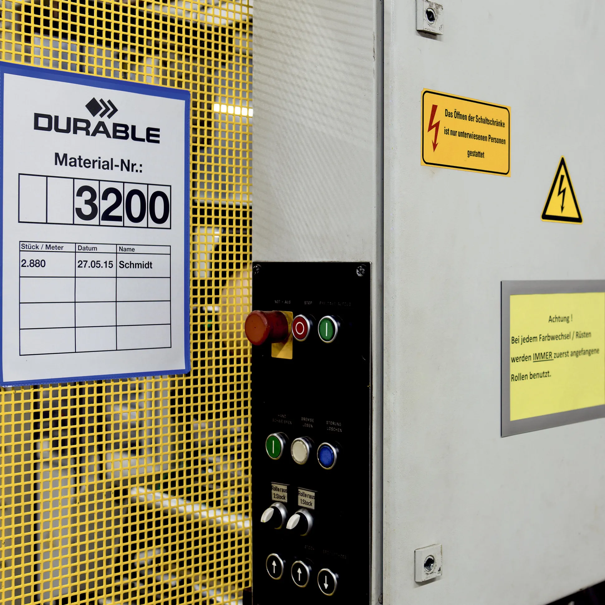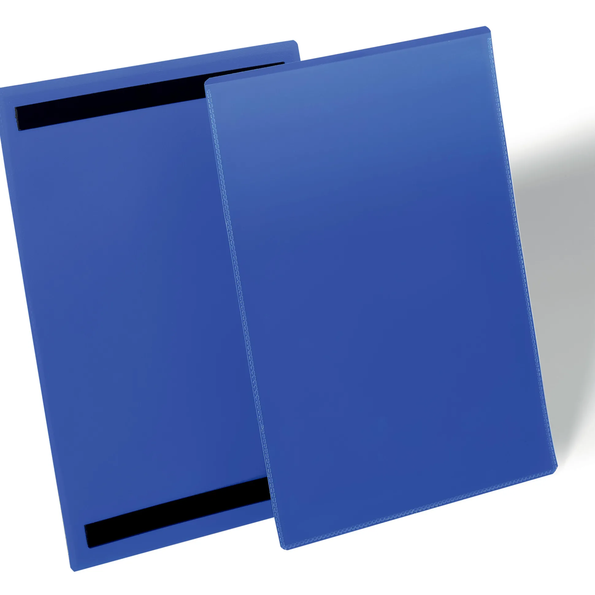 Lagerlomme med blå bagside med magnetiske strips og gennemsigtigt vindue lavet af heavy-duty polypropylen. Brug på metaloverflader, såsom lager hylder, metal vægge og metalbeholdere. Rivefast og velegnet til scannere. Indholdkan udskiftes hurtigt. Gratis skabeloner til etiketter fås fra www.duraprint.eu. Indvendige mål: A4 høj (B x H) Udvendige mål: 223 x 313 mm (B x H)