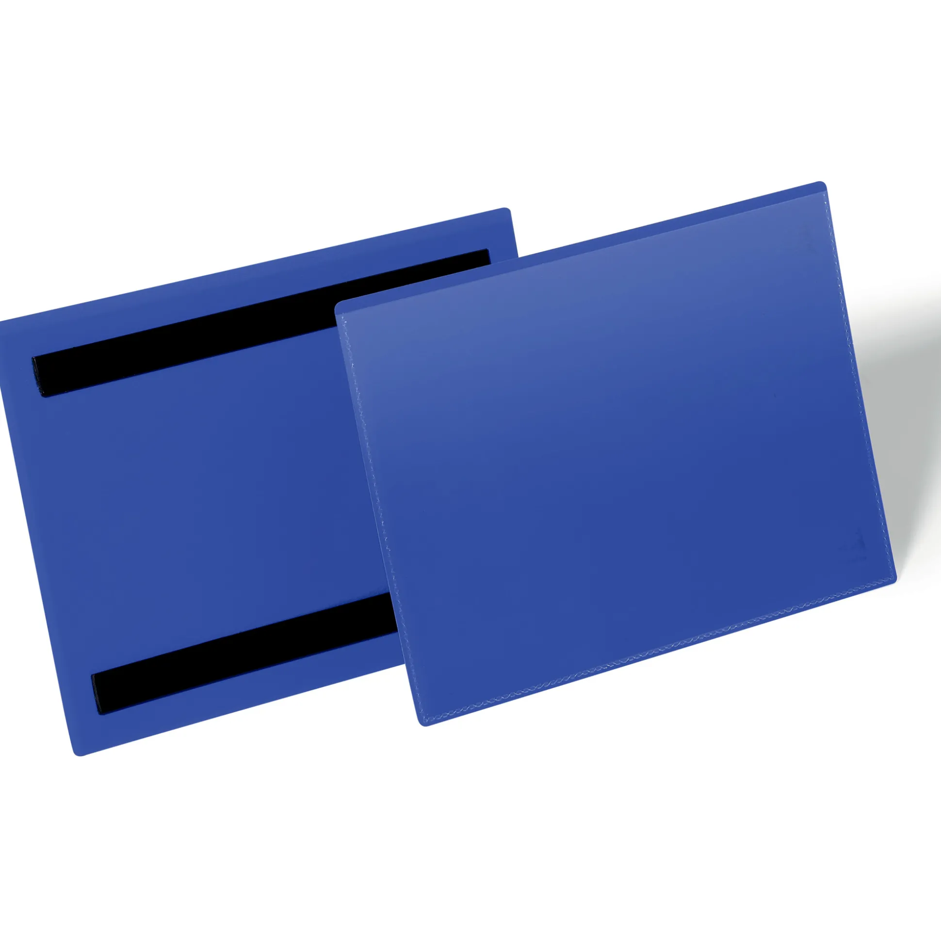 Lagerlomme med blå bagside med magnetiske strips og gennemsigtigt vindue lavet af heavy-duty polypropylen. Brug på metaloverflader, såsom lager hylder, metal vægge og metalbeholdere. Rivefast og velegnet til scannere. Indholdkan udskiftes hurtigt. Gratis skabeloner til etiketter fås fra www.duraprint.eu.Indvendige mål: A5 tvær (B x H) Udvendige mål: 223 x163 mm (B x H)