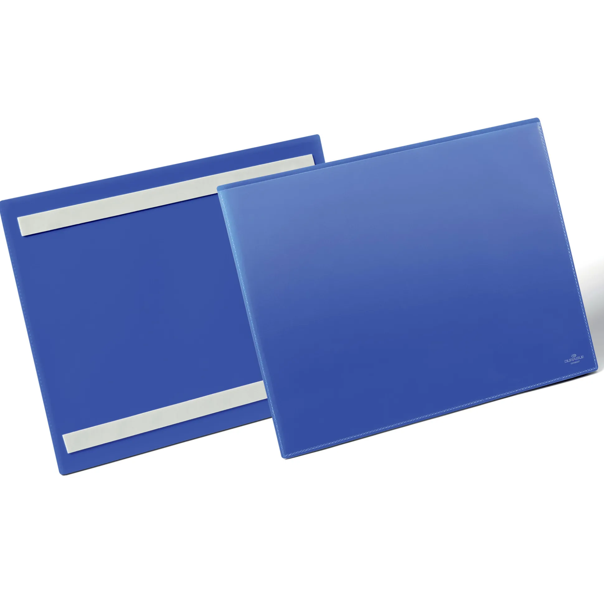 Lagerlomme med blå bagside med selvklæbende strips og gennemsigtigt vindue lavet af heavy-duty polypropylen. Brug på alle overflader, såsom metal, karton og plast. Rivefast og velegnet til scannere. Indhold kan udskiftes hurtigt. Gratis skabeloner til etiketter fås fra www.duraprint.eu. Indvendige mål: 297 x 210 mm (B x H) Udvendige mål: 311 x 225 mm (B x H)