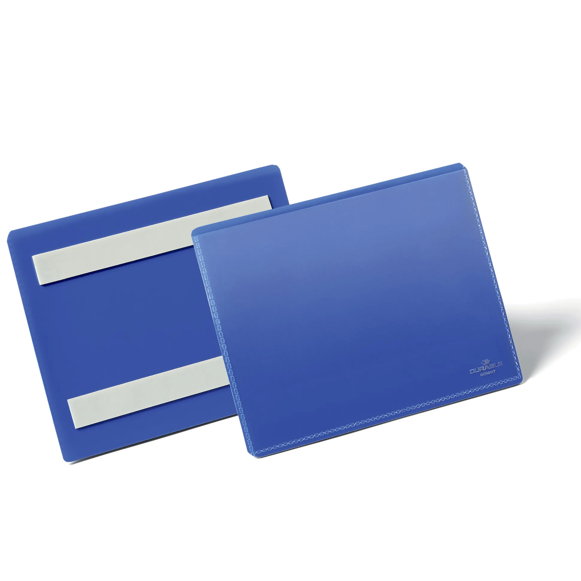 Lagerlomme med blå bagside med selvklæbende strips og gennemsigtigt vindue lavet af heavy-duty polypropylen. Brug på alle overflader, såsom metal, karton og plast. Rivefast og velegnet til scannere. Indhold kan udskiftes hurtigt. Gratis skabeloner til etiketter fås fra www.duraprint.eu. Indvendige mål: 148 x 105 mm (B x H) Udvendige mål: 163 x 120 mm (B x H)