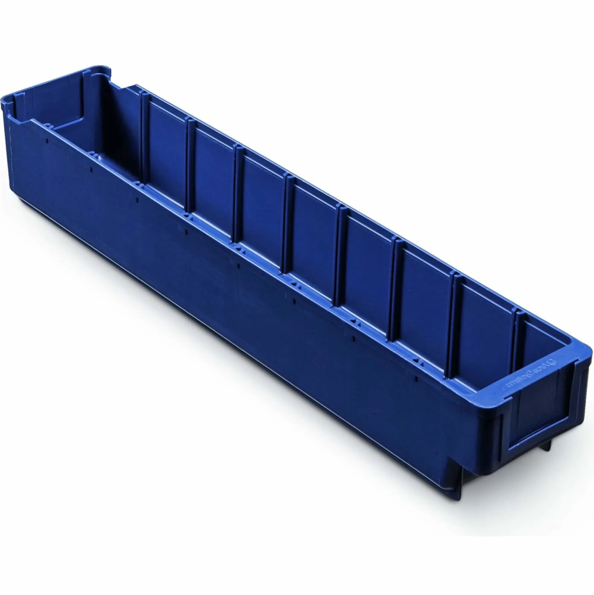 ArcaSystems lagerskuffe i blå. Med gribebakker bagpå, så skufferne kan hænge i hylderne. Udført i slagfast plast. Passer med 10 lagerskuffer på en 100 cm. hylde. (model 4537)