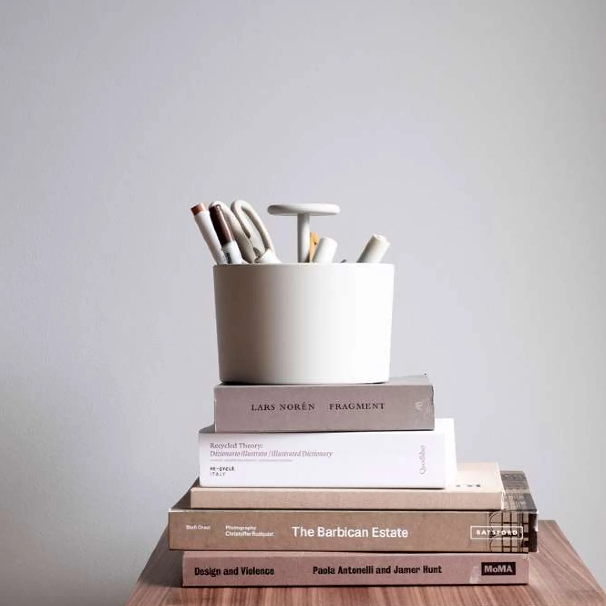 En smart og praktisk bordopbevaring til whiteboardpenne og andre kontorartikler. Findes i 4 udvalgte farver og har en blød gummibelagt overflade. Designet af HALLEROED.
