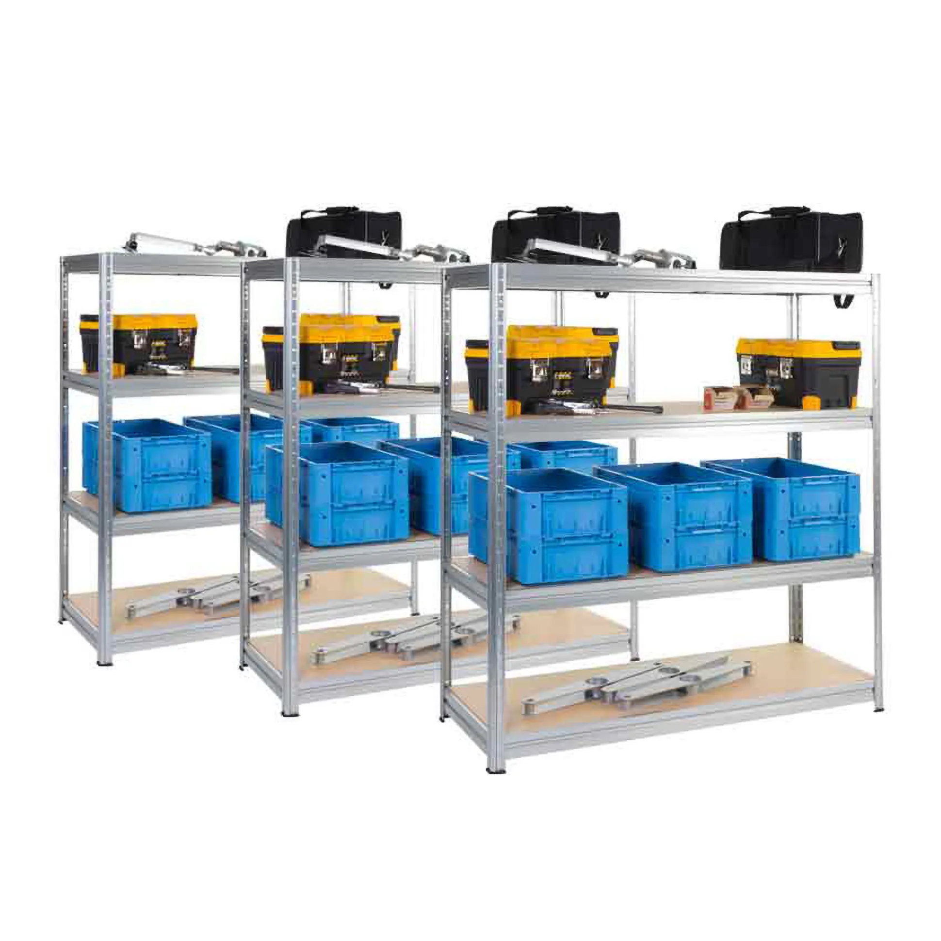 Magnum storreol er galvaniseret og med hylder af 7 mm. MDF-plade. Mål: 180h x 160b x 60d cm. 4 flytbare hylder. Belastningen er 600 kg. pr. hylde, jævnt fordelt. Magnum storreol samles uden bolte/møtrikker – du kan bare bruge en hammer. Galvaniseret, så rust mindskes. Ideel til store og tunge emner. Skal du lave en lang opstilling, er her plads til meget opbevaring, uden mange gavle. Europæisk kvalitet.
