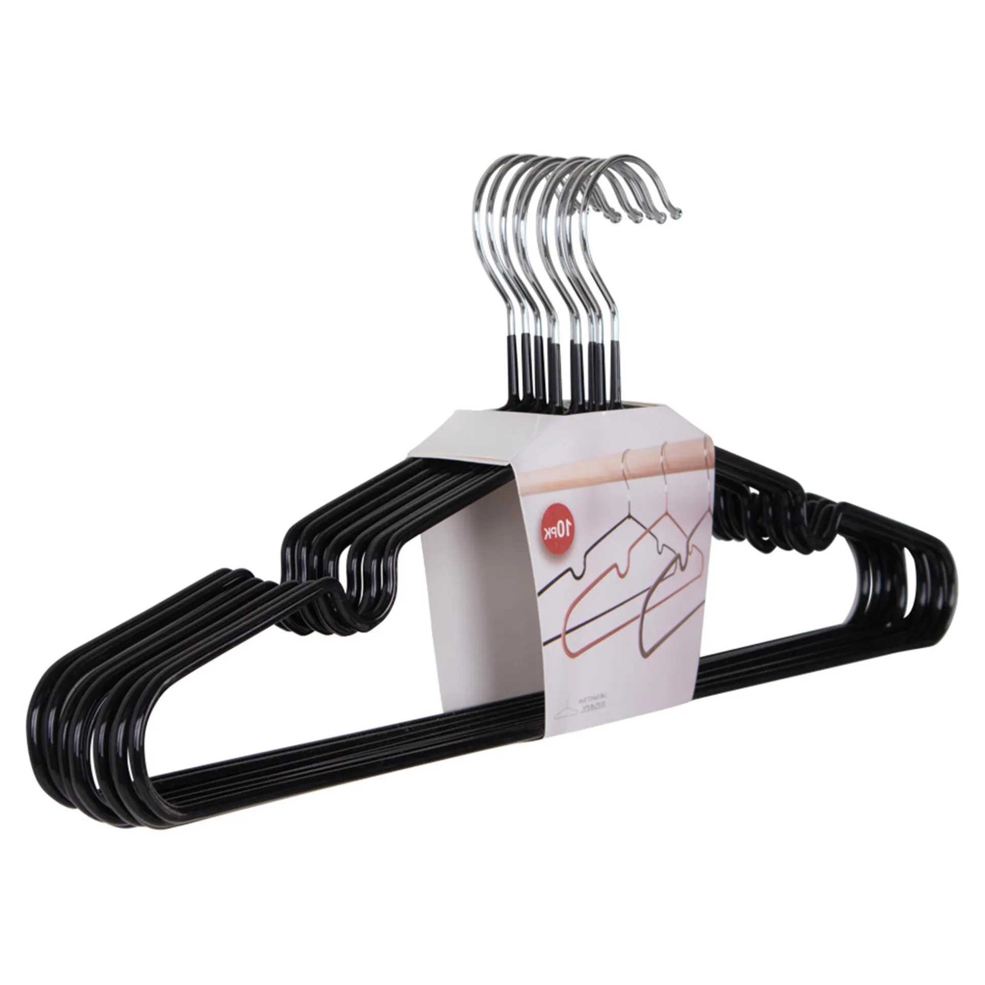 Holdbart sæt af 10 metalbøjler med sort belægning