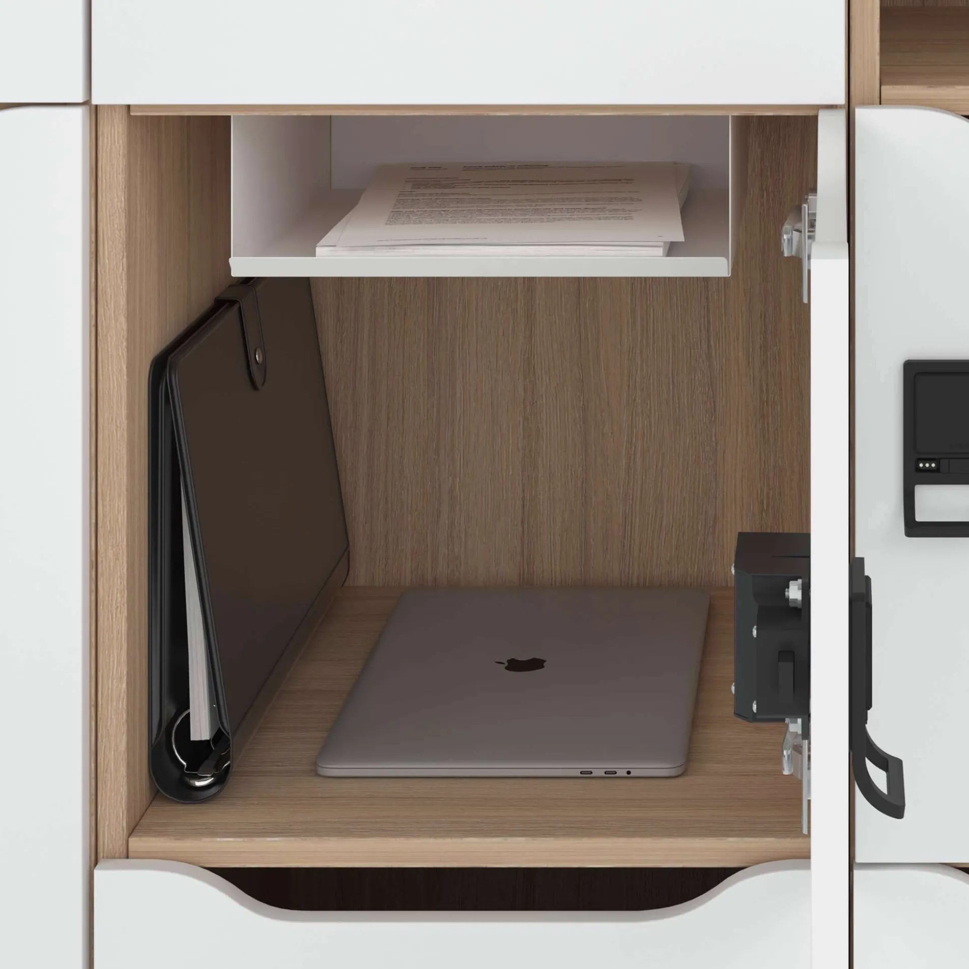 Metalhylde til New Choice personaleskabe. Fås i mange farver og kan eftermonteres i skabene. Monteres i centralt i rummet. Måler 32x38x11h cm.