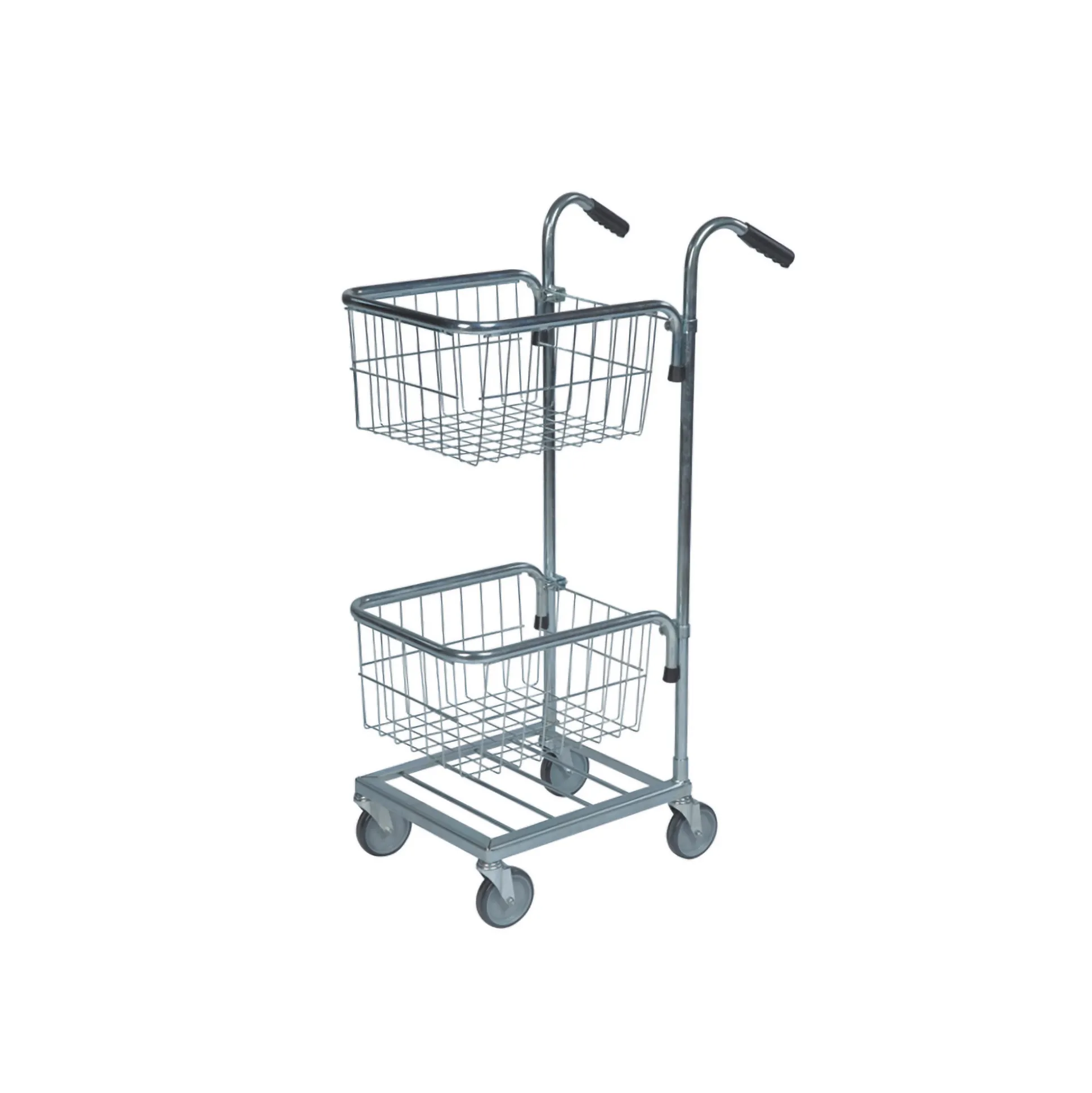 Elforzinket minivogn med 2 trådkurve, der kan justeres i højden. 4 svingbare hjul, Ø10 cm. Belastning: 35 kg. Trådkurvmål: 41,5×35,5x22h cm.