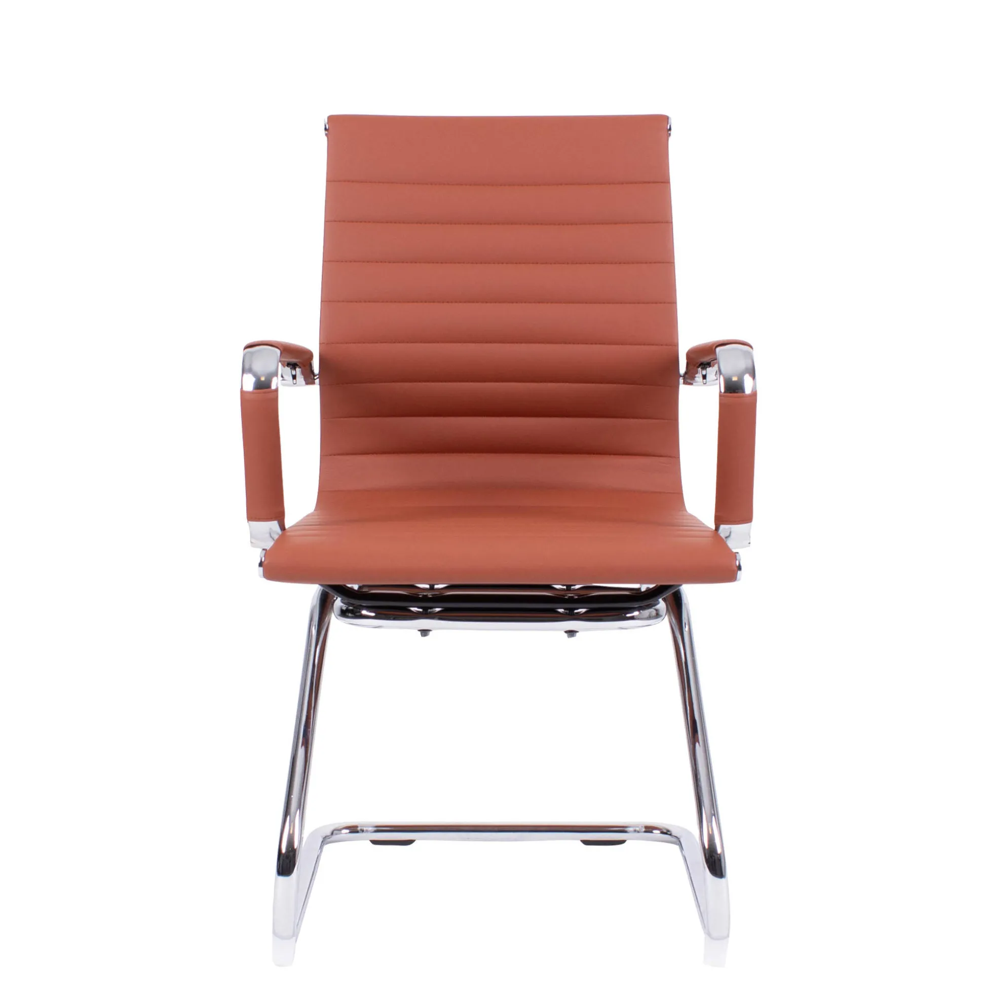 Lækker gæstestol/mødestol til dit kontor i ægte amerikansk stil. Denne gæstestol er polstret med lækker slidstærk PU på flotte blanke krom medeben. Passer perfekt sammen med vores C 10 72A H kontorstol med høj ryg. Armlænene er betrukket med aftageligt kunstlæder, så det blanke metal ikke føles koldt.