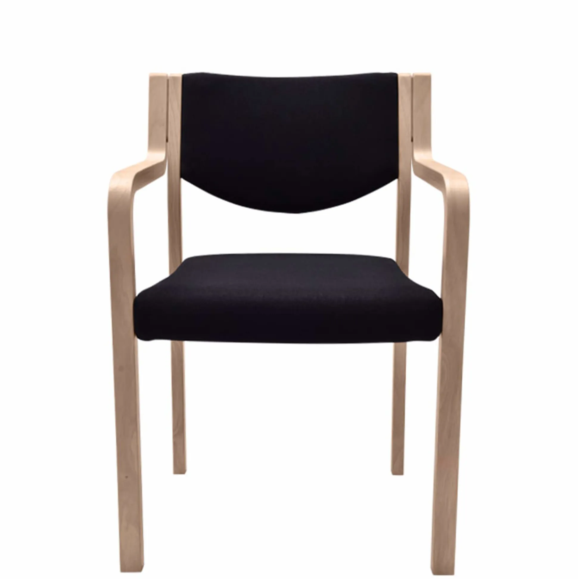 Polstret gæste-/mødestol med massivt træstel.
