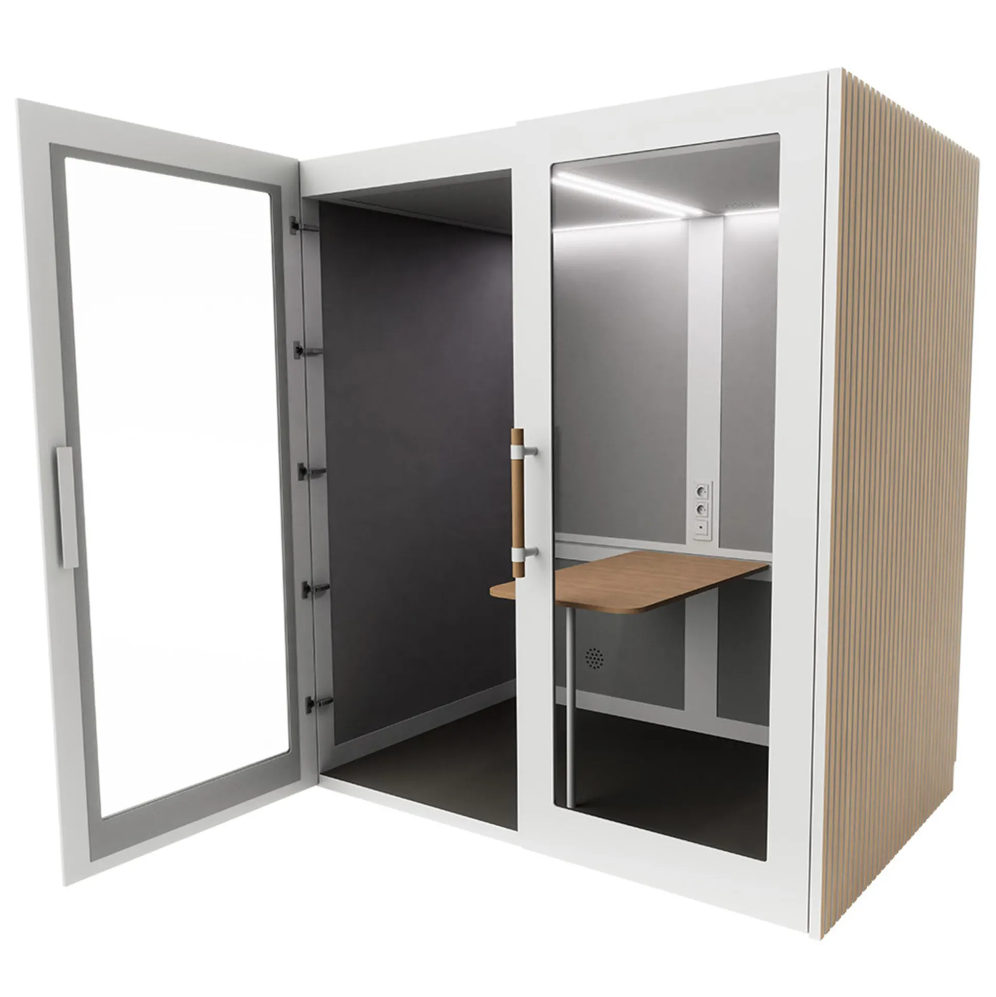 Stilren PhoneAlone mødeboks med egetræslameller til 4 personer