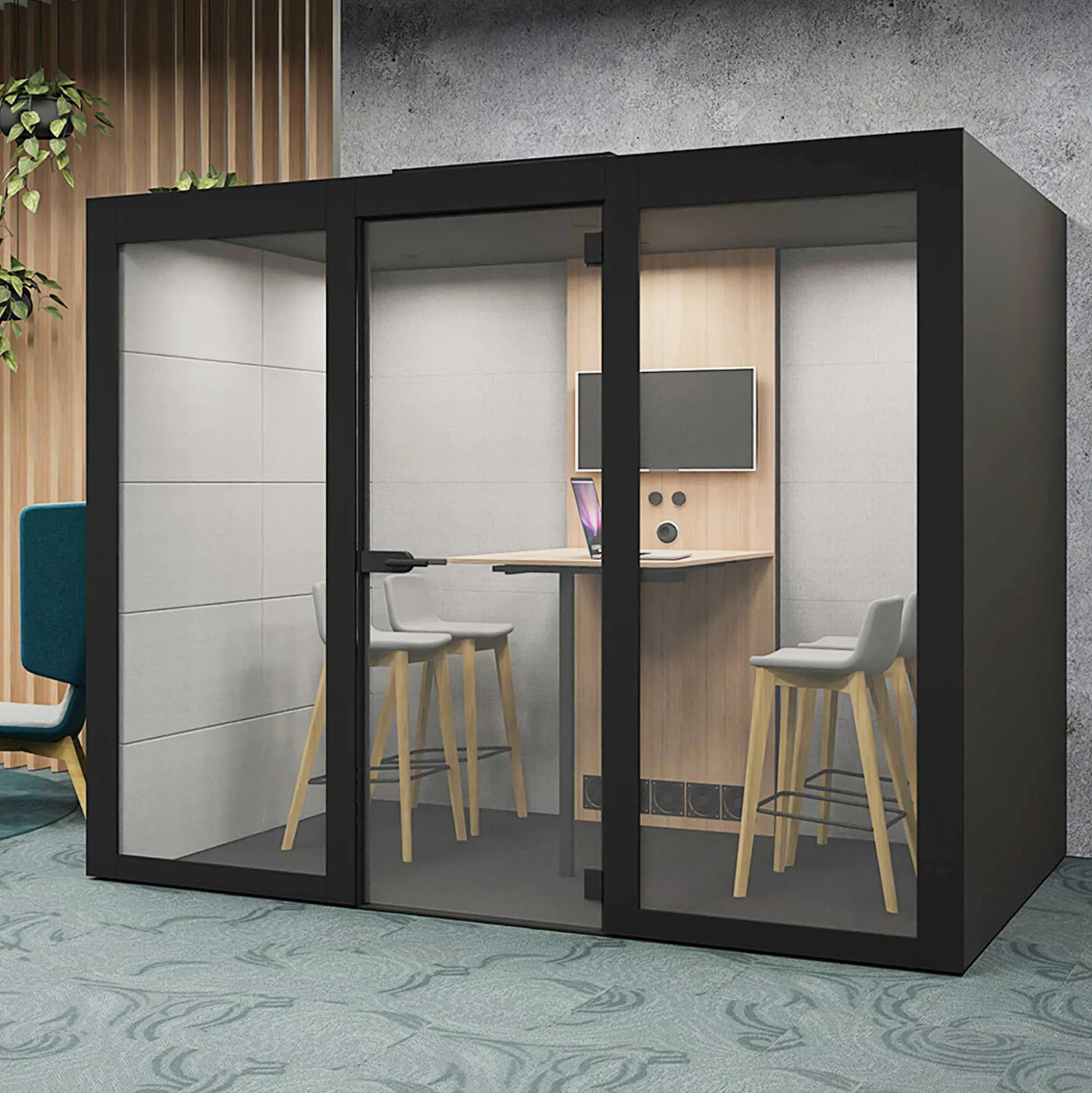 Lyddæmpende mødeboks med højt bord til 4 personer