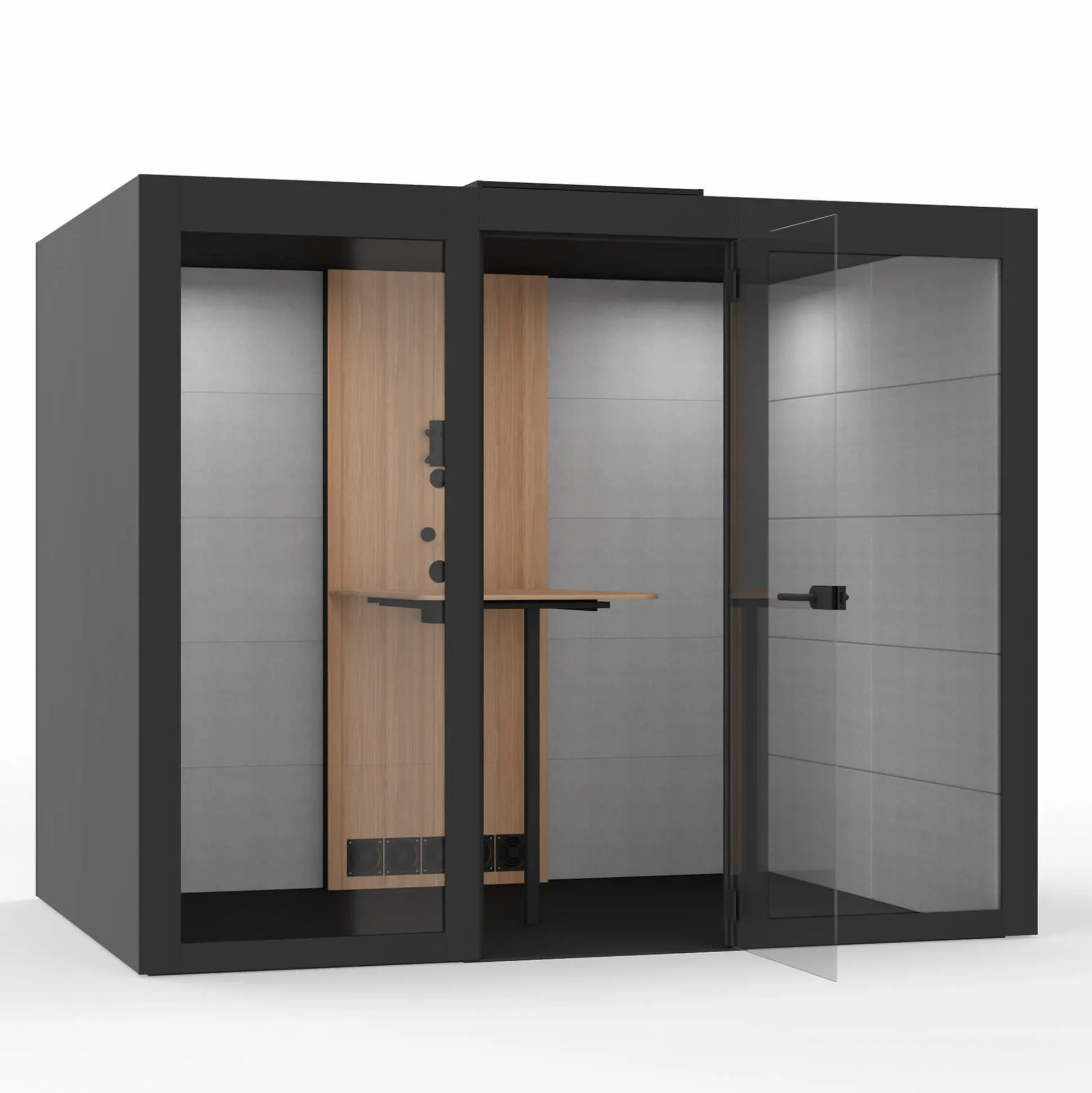 XT møderum er et lyddæmpende og eksklusivt møderum ideel til åbne kontormiljøer, hvor der ikke er mulighed for at kunne gå afsides og holde møder. Møderummet har plads til 4 personer.