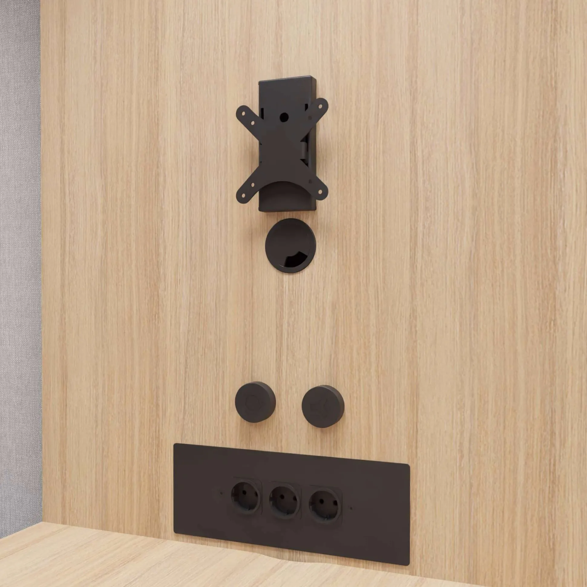 Dette møderum fås også i andre konfigurationer med bord og sofaer, ellers vælger mange at bruge egne siddemøbler eller skriveborde, elle finde noget i vores webshop som passer til ens egen smag.